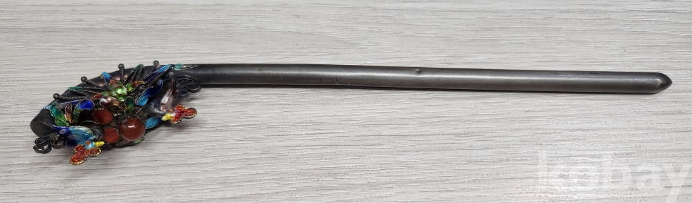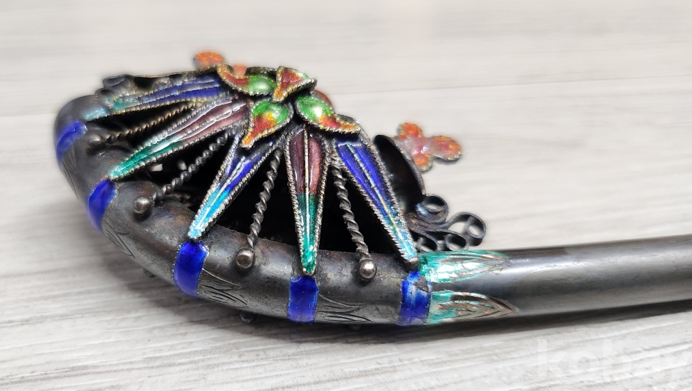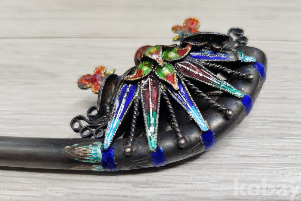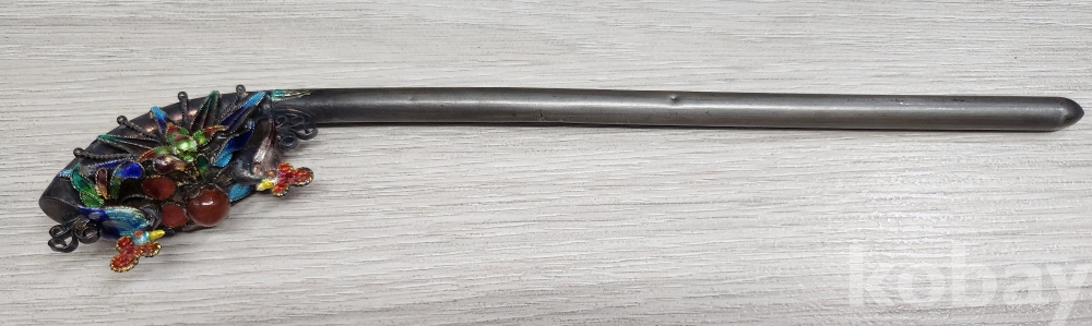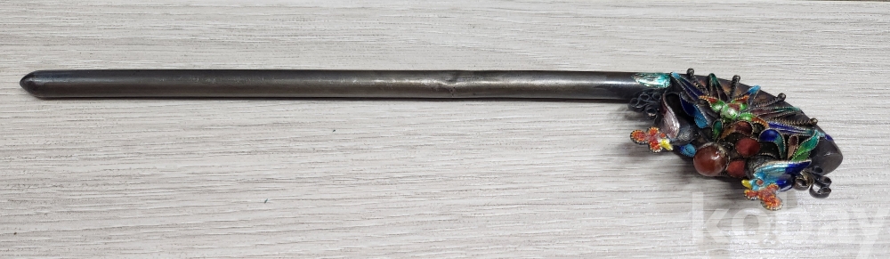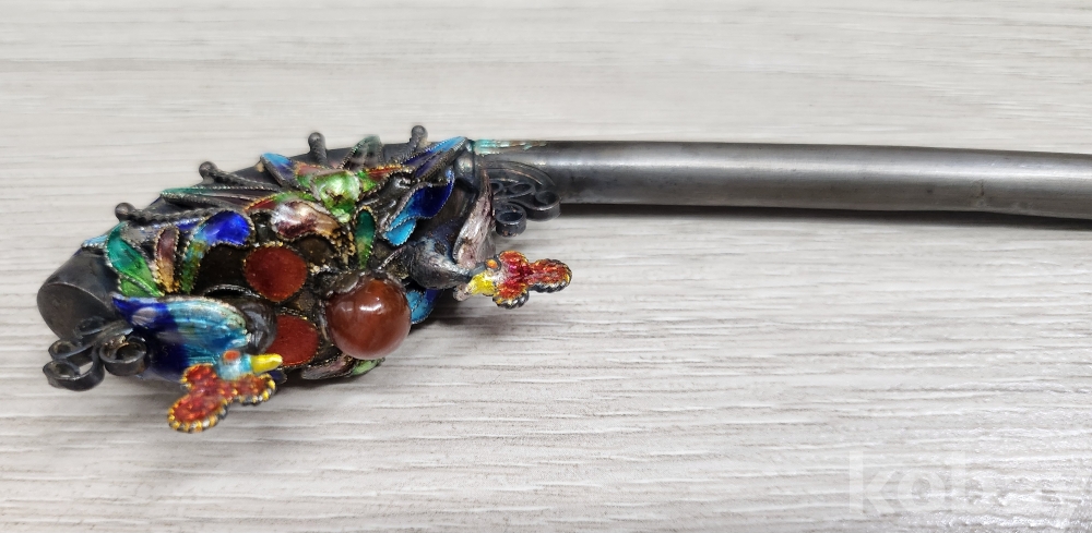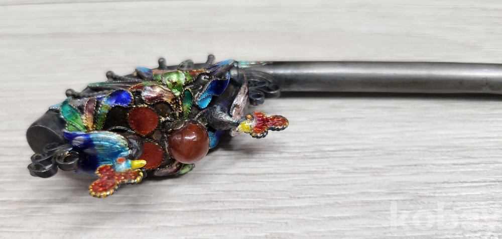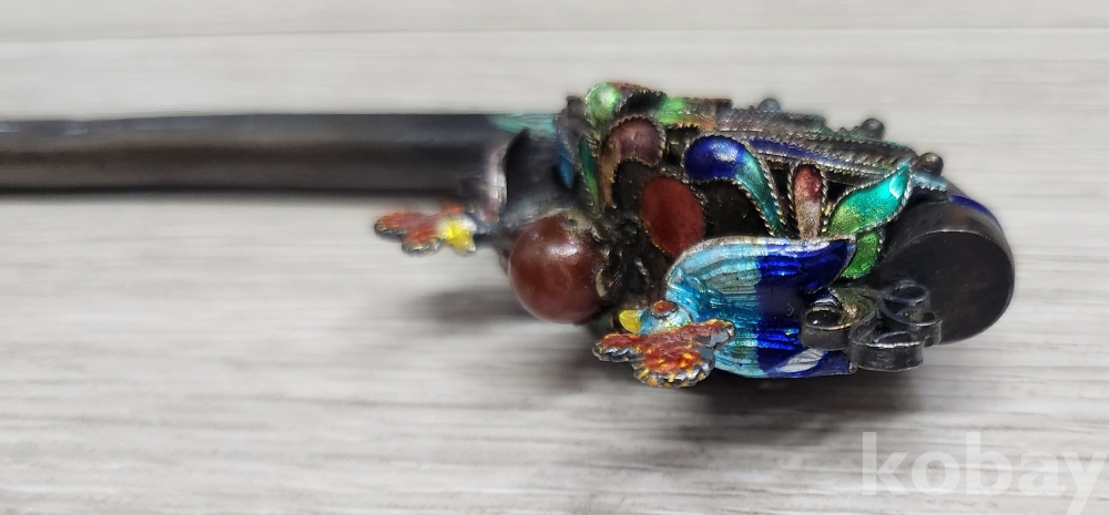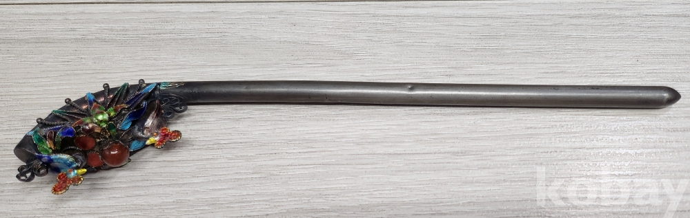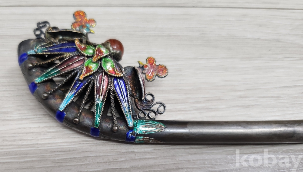 선조들이 사용한 은. 칠보 대형비녀 입니다 가운데 동그란건 천연 옥돌입니다 양쪽으로 봉황이 2마리가 있습니다 귀한 비녀 입니다
