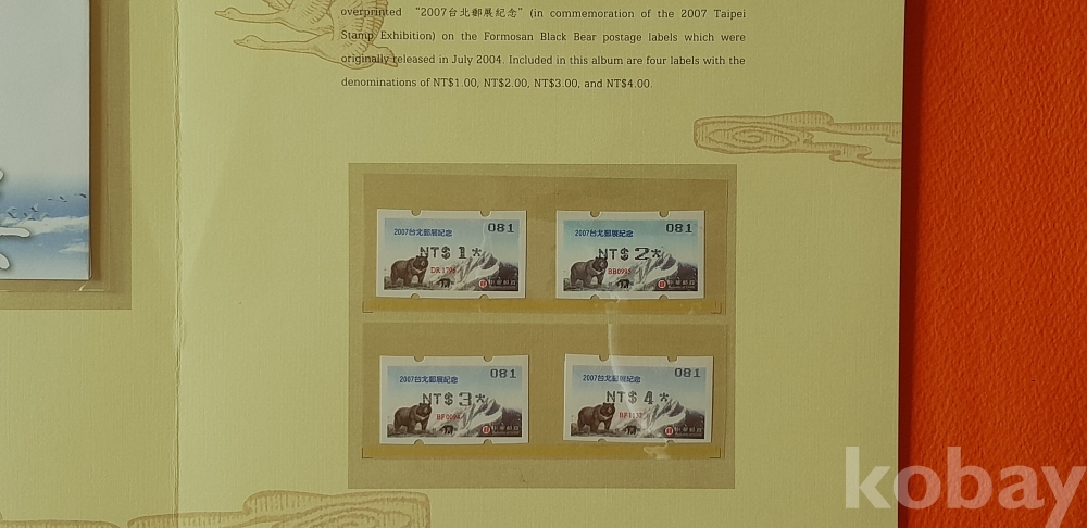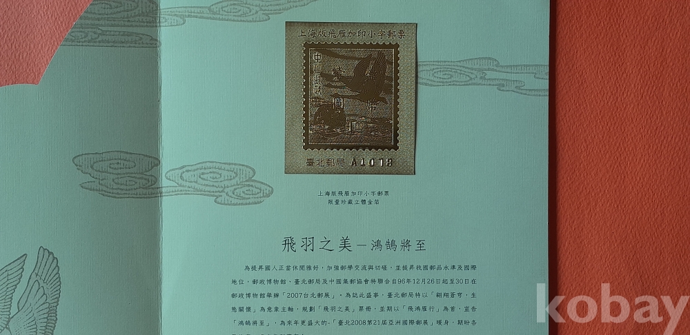 금박 우표와 대만 조류 우표, 금박 책갈피 등이 포함되어 있습니다.