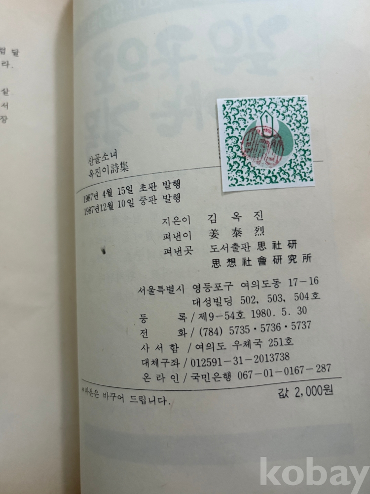 ★시집 '산골소녀 옥진이 시집' 사사연 1987년