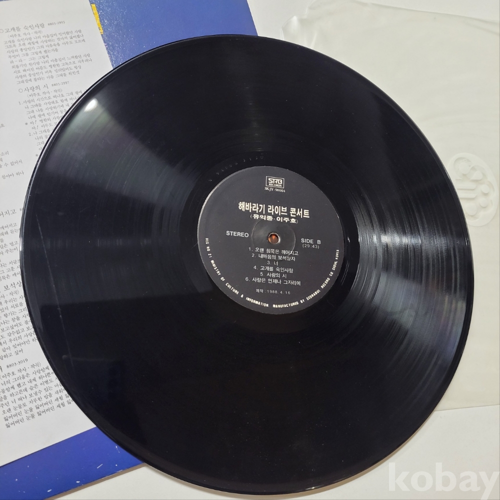 1988년에 발매된 듀오 해바라기(이주호, 유익종)의 '라이브 콘서트' LP 음반입니다.