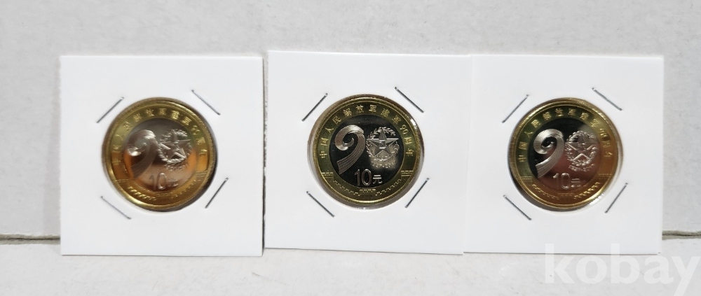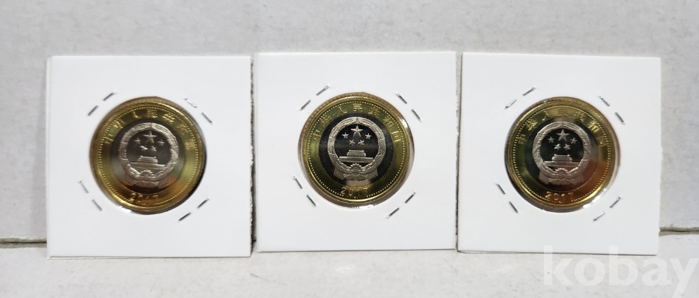 -중국 2017년 건국 90주년 바이메탈 기념주화 10위안 미사용 3개 일괄 입니다.