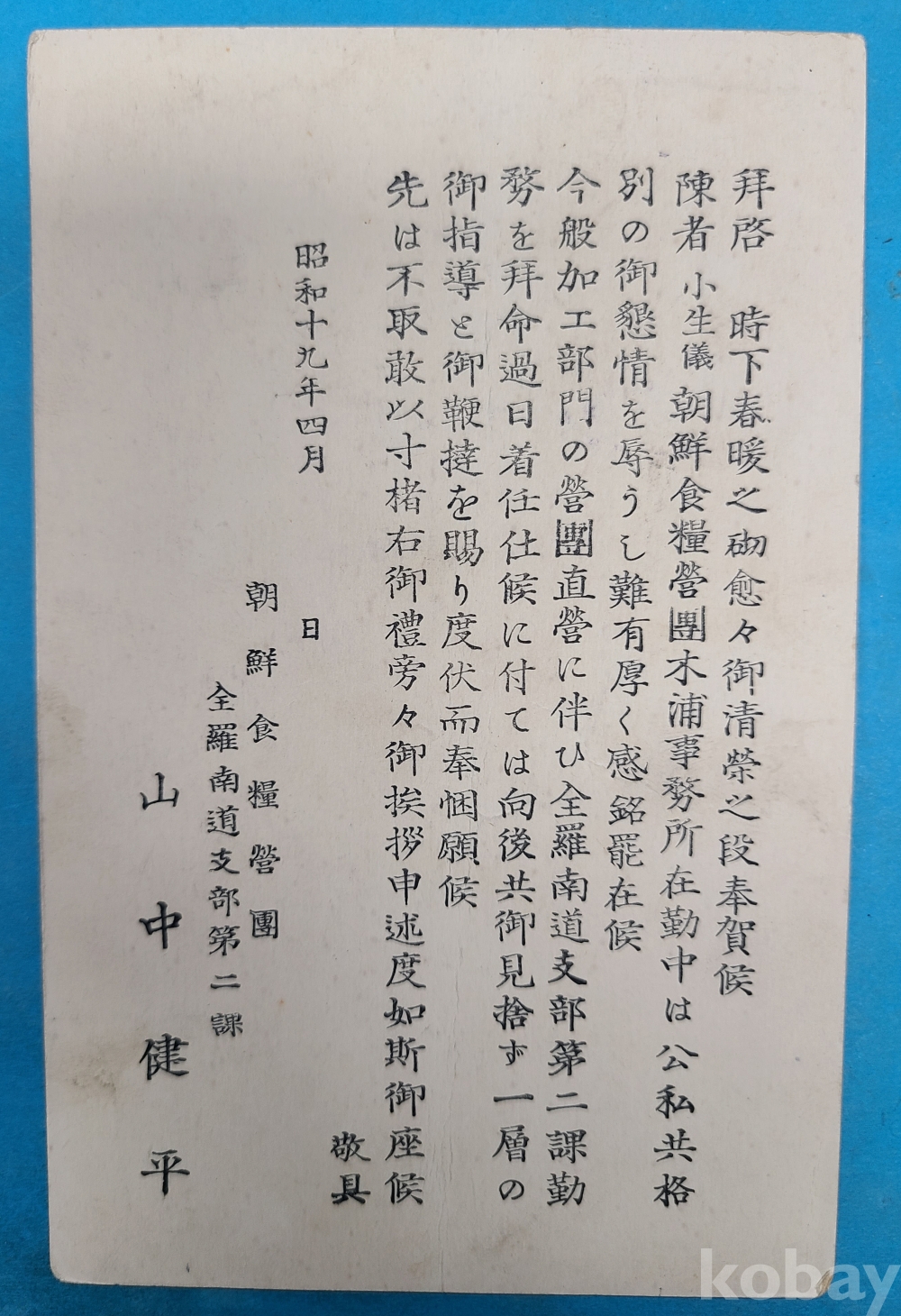 1944년 朝鮮食糧營團 全羅南道支部 근무자 인사장