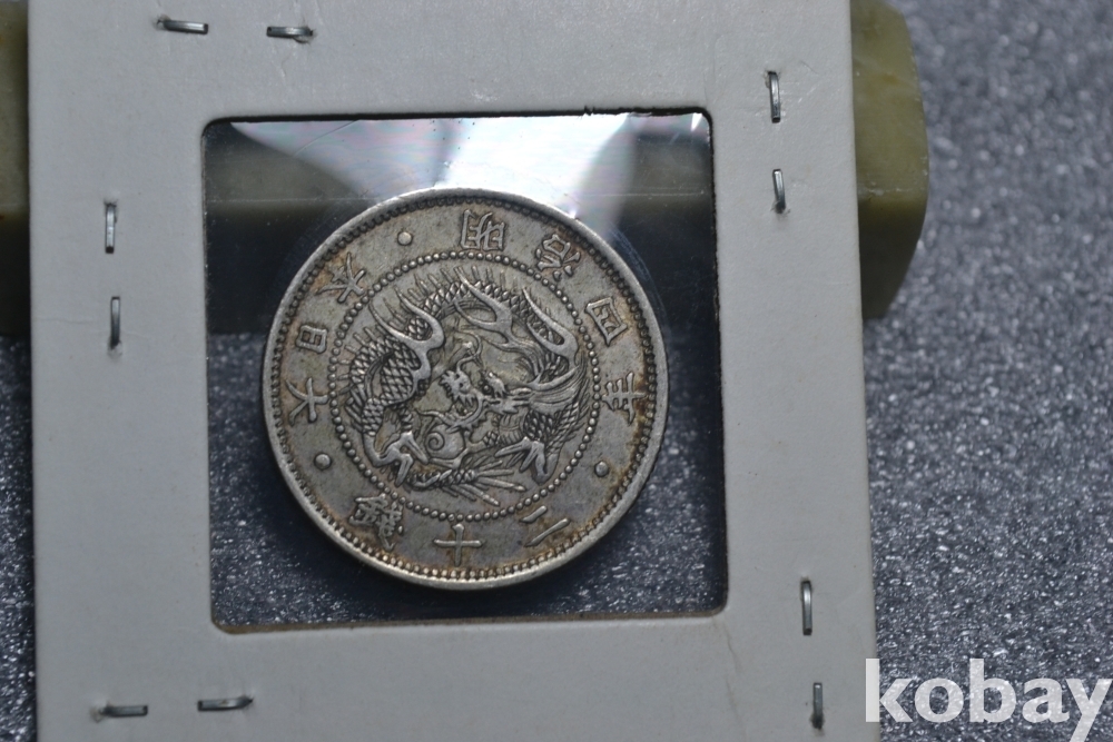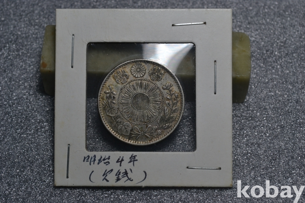 100년 넘는 오래된 명치초기 발행작품으로 명치4년도(1871년도) 일본 초창기 " 결전,흠전(欠錢) " ~ 욱일용 20전 은화 입니다.