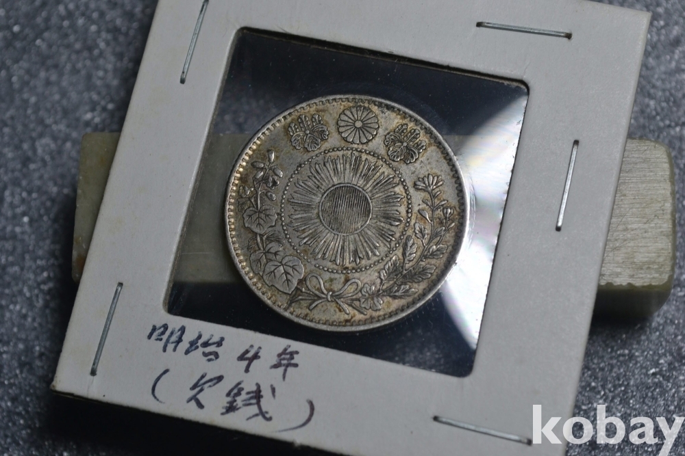 금전적인 문제를 떠나서 쉽게 입수가 어려운 귀한 종류의 " 결전,흠전(欠錢) " 명치4년도 욱일용 20전은화 입니다.