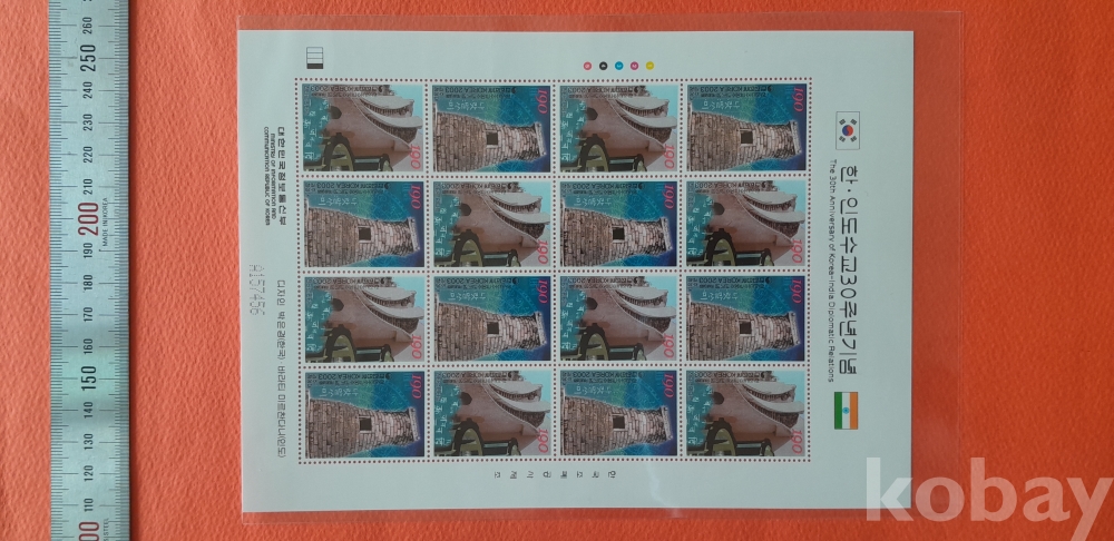 2003 한국 - 인도 수교 30주년 기념 190원 16매 전지 입니다.