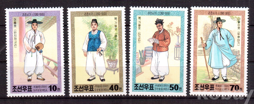(의상) 북한 2001.1.19 민족의상 (리조시기) 4완 MNH
