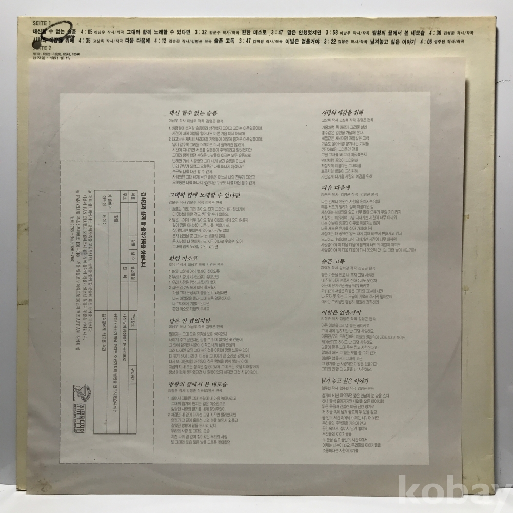LP 35,850-45 김혁경 1집 - 대신할 수 없는 슬픔 . 90 뮤직디자인 자켓 EX 알판 EX+