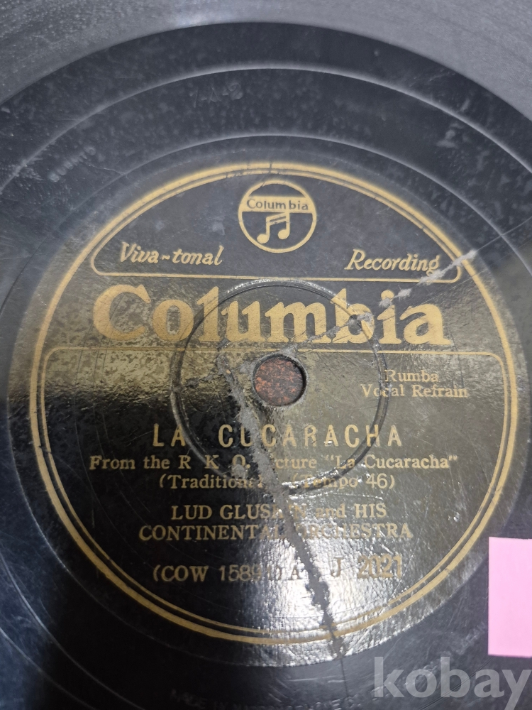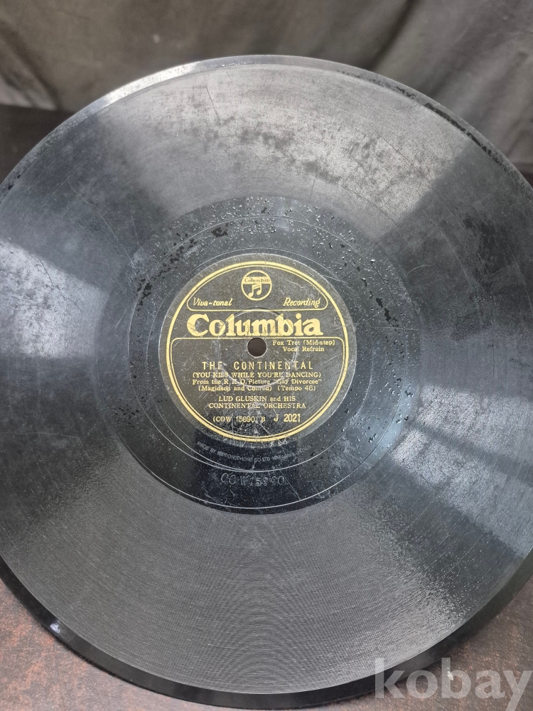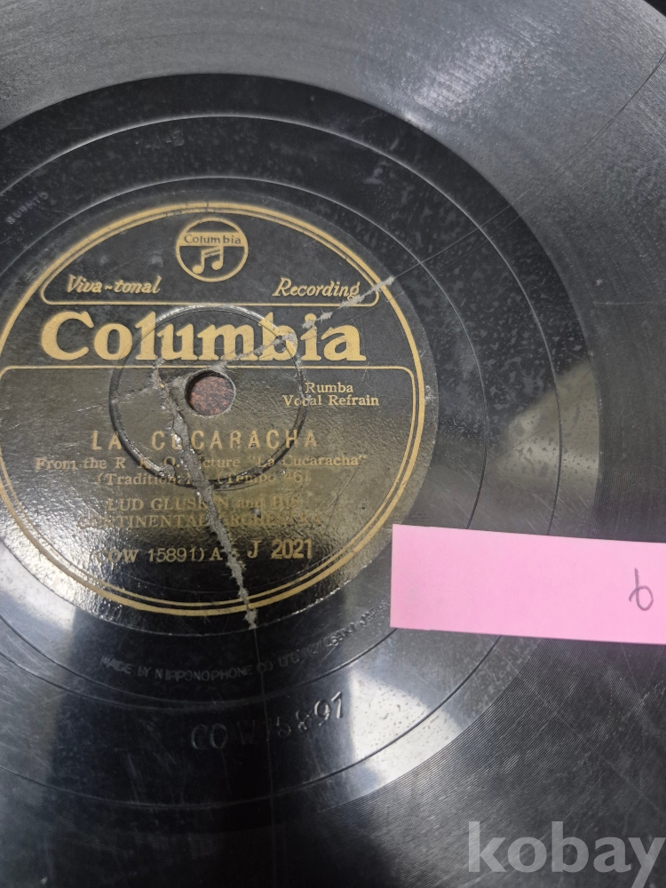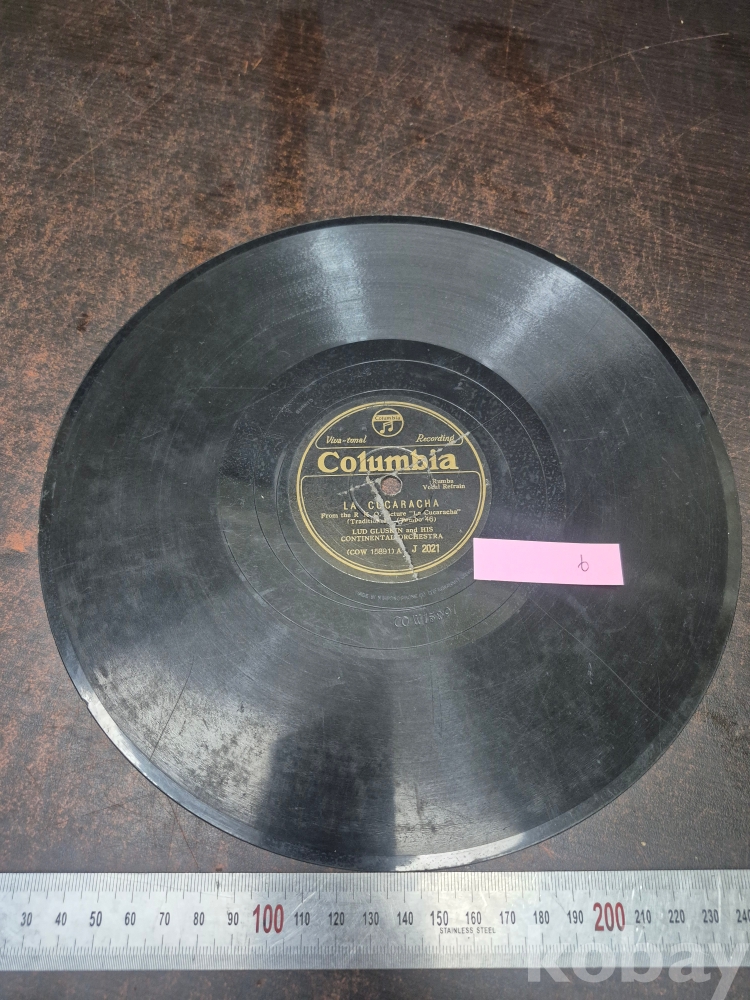 콜롬비아 레코드사 요한 슈트라우스 왈츠 메들리 비엔나 보헴 오케스트라 연두 5 유성기 돌판 1점 25*25