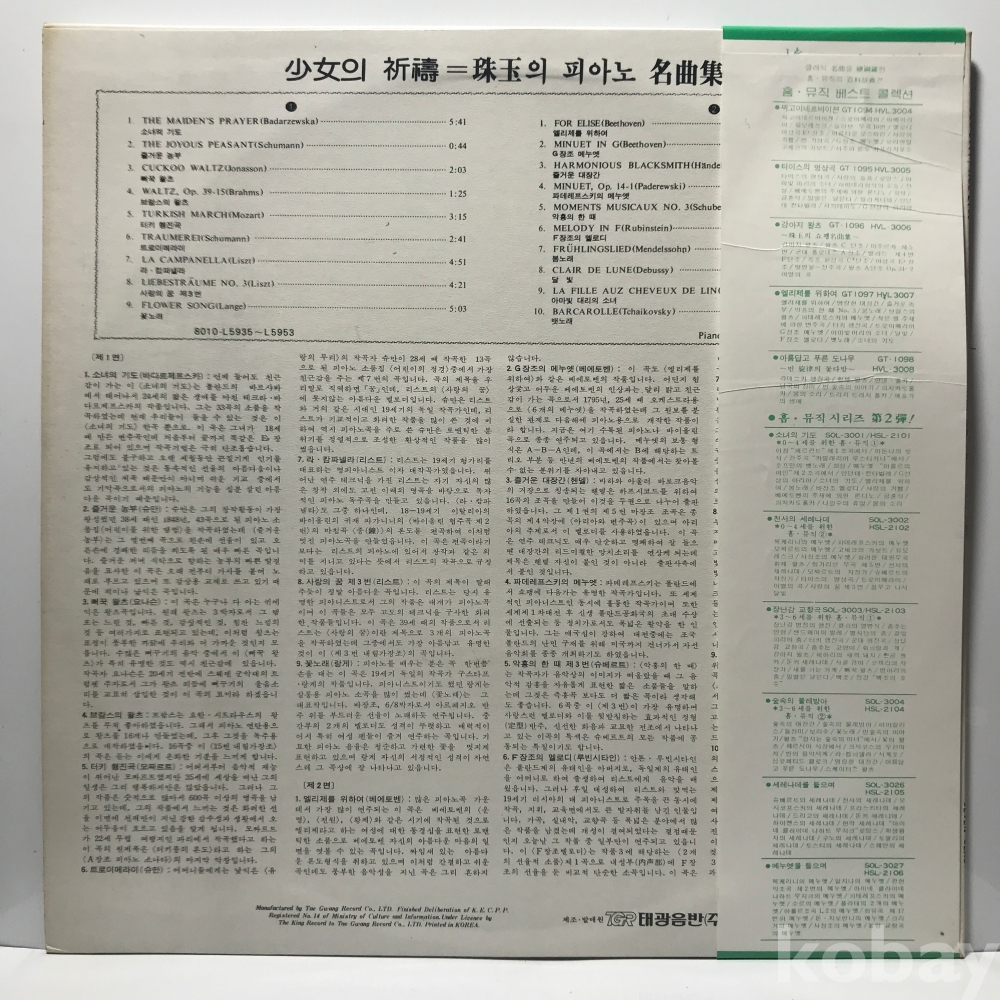 LP 82,350-70 주옥의 피아노 명곡 - 소녀의 기도/ 엘리제를 위하여 . 자켓 EX+ 알판 EX 81 년제작 국내반
