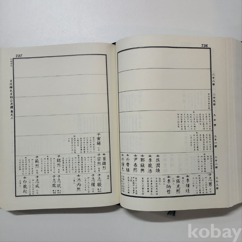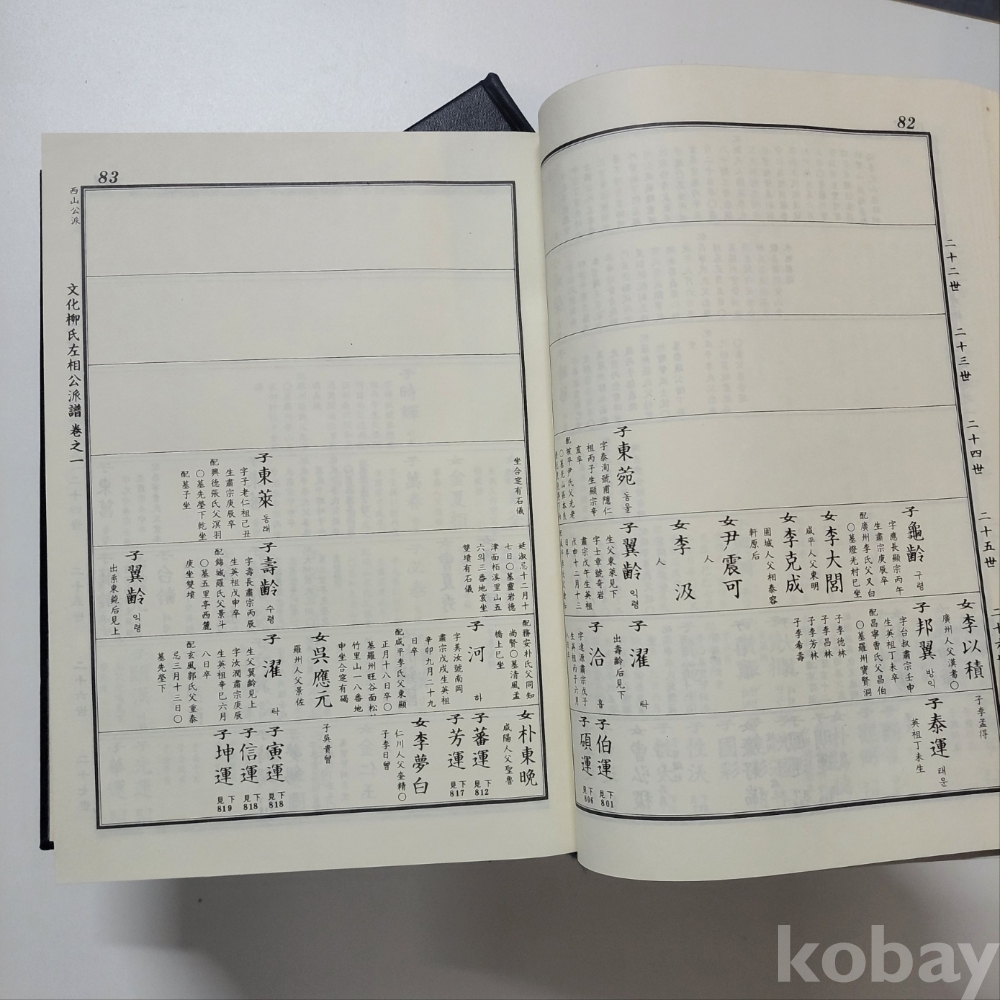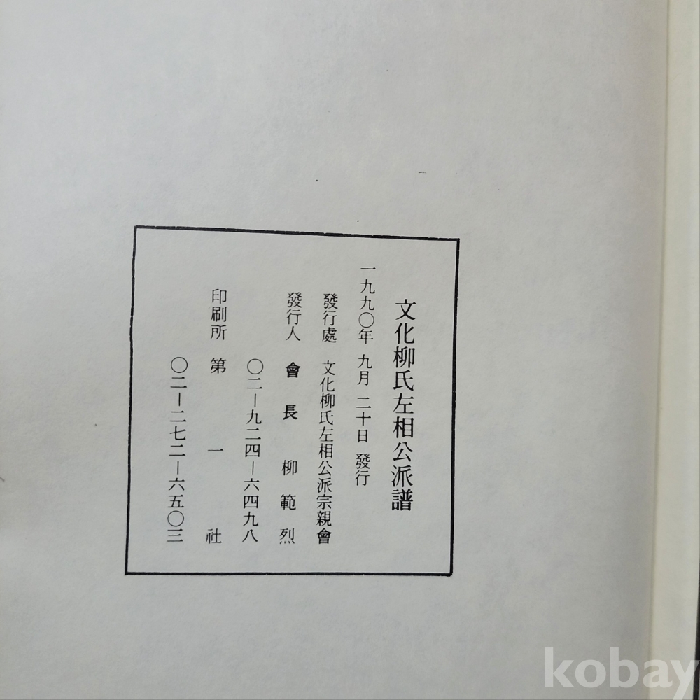 文化柳氏左相公派譜는 문화 류씨(柳氏) 좌상공파(左相公派)의 계보와 역사를 기록한 족보로, 주로 가계도와 선조들의 업적, 족보 편찬 경위 등이 수록되어 있습니다.