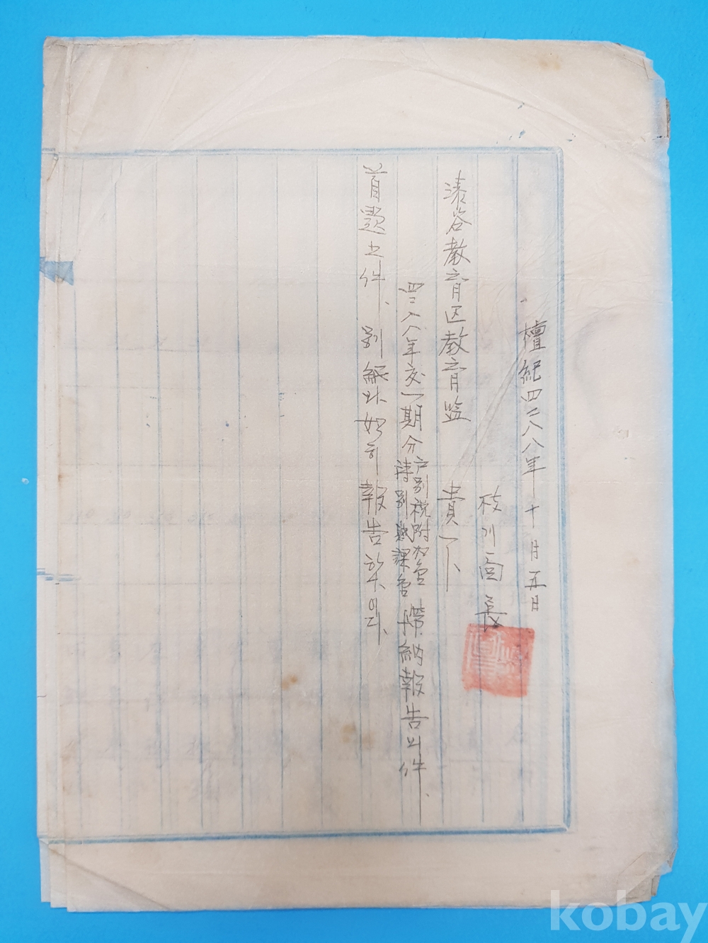 **** 1955년 지천면장이 칠곡교육구교육감에게 보고한 [호별세부가금특별부과금 체납보고의 건] 문서
