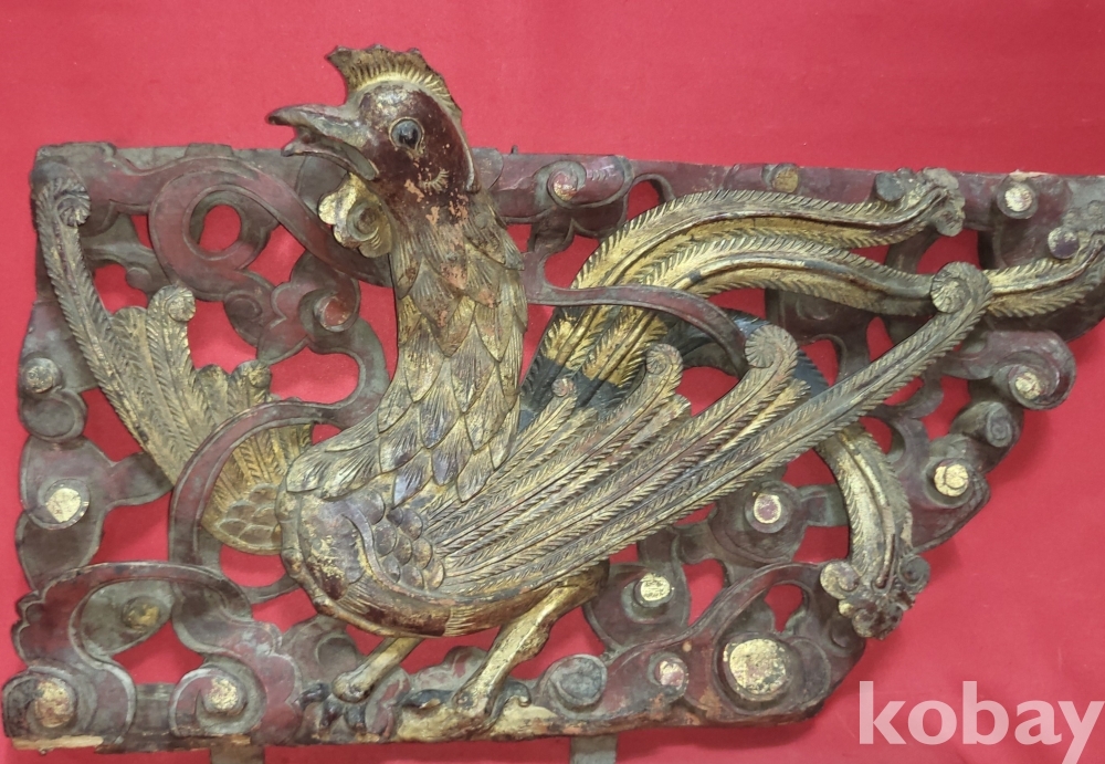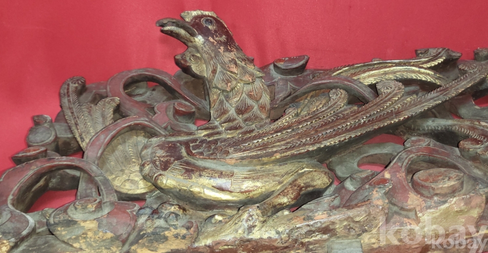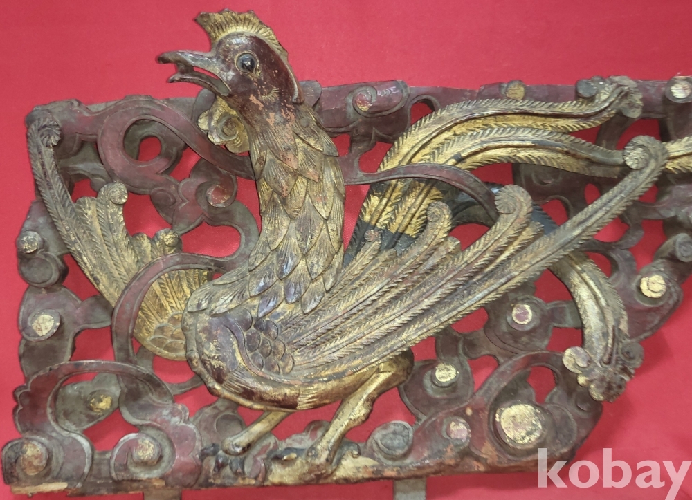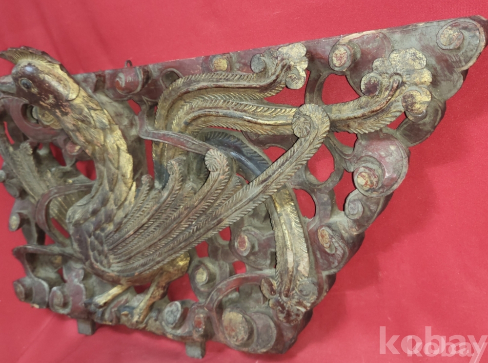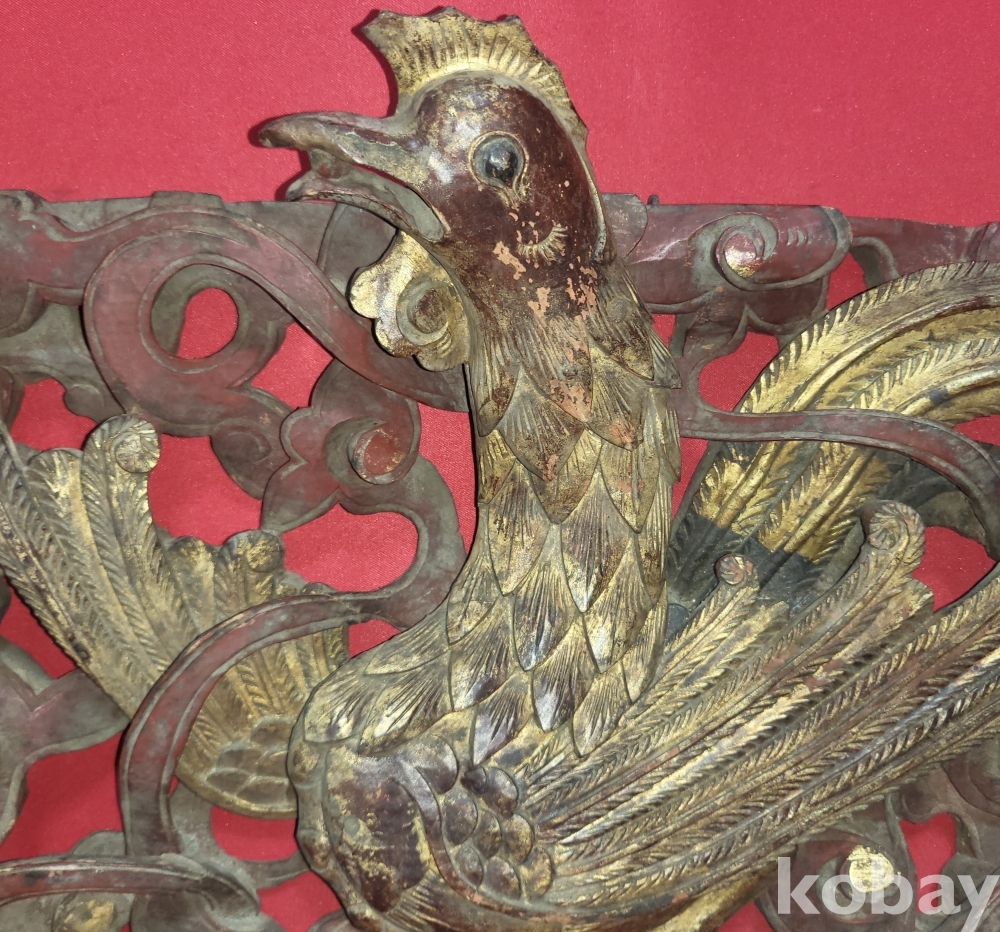황금색 금늬가 살아있는 구한말 연대 갖춘 나무로 완성된 봉황(鳳凰) 조각품입니다,