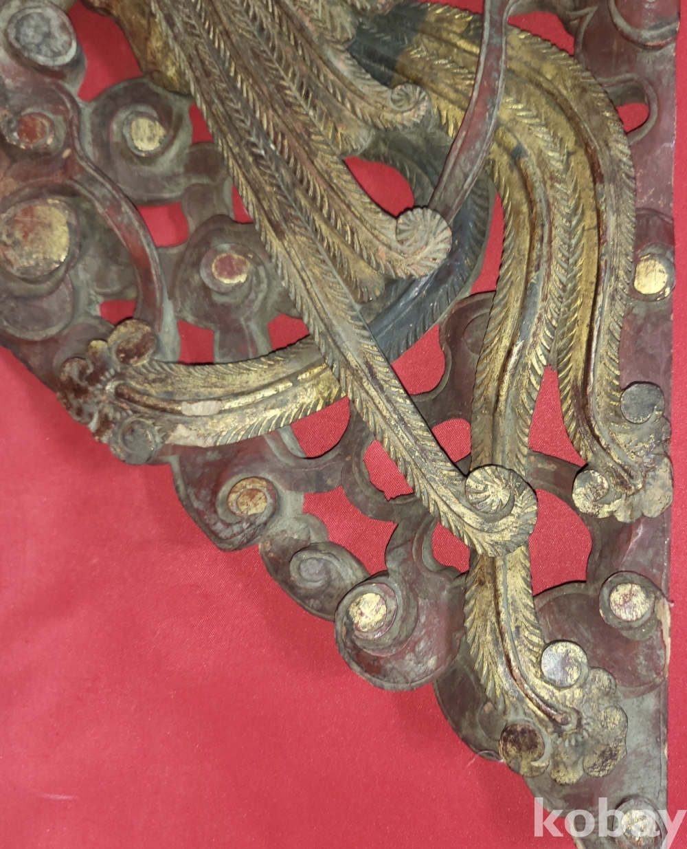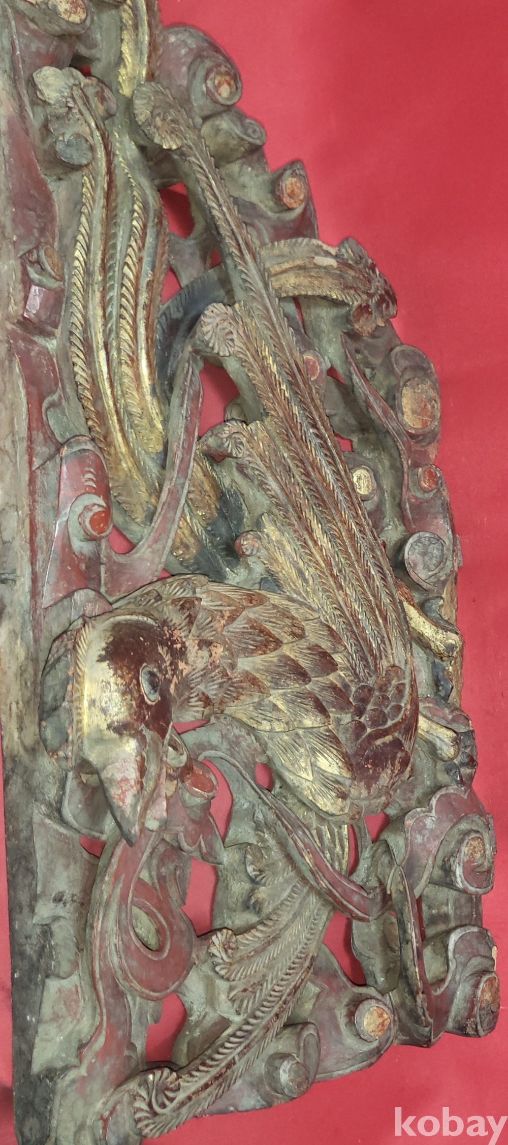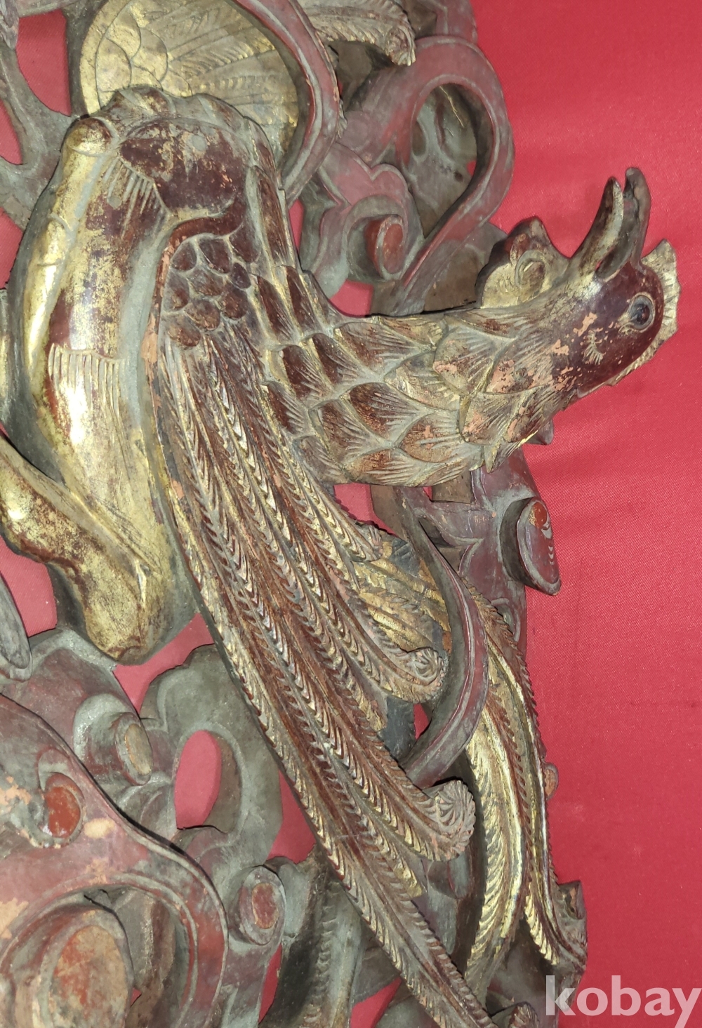 황금색 금늬가 살아있는 구한말 연대 갖춘 나무로 완성된 봉황(鳳凰) 조각품입니다,