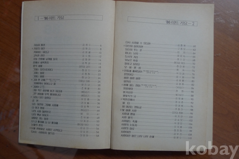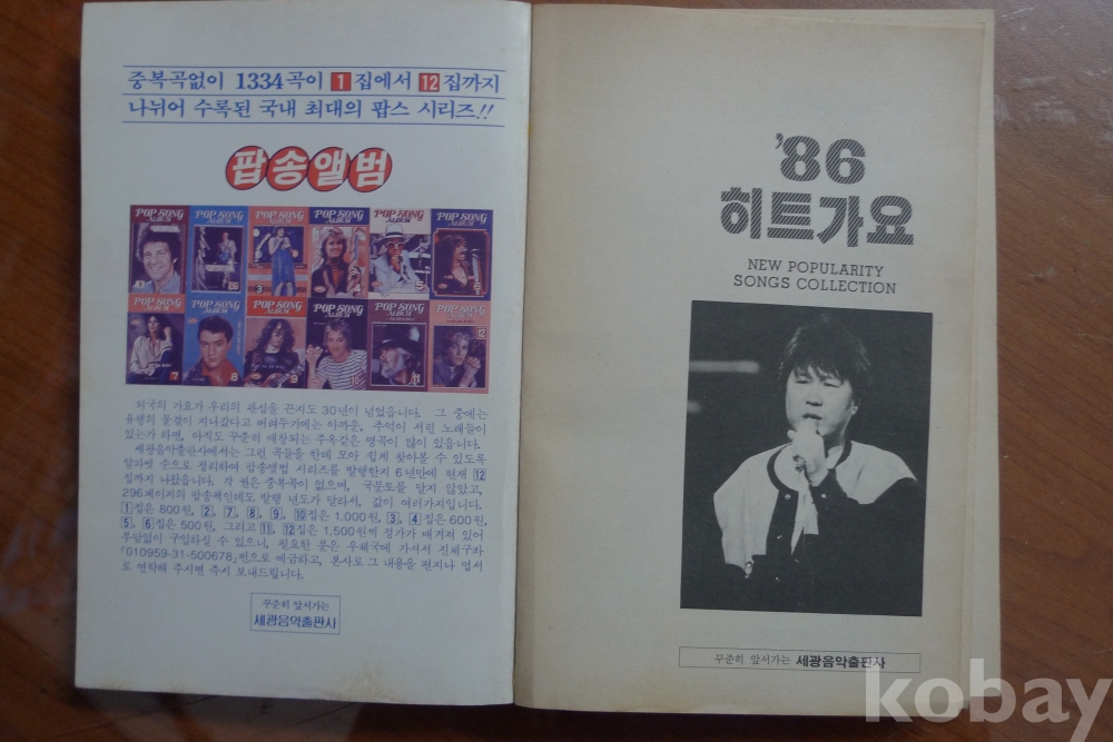 1986년 세광출판사 '86 히트 가요 - 표지모델 가수 조용필 -