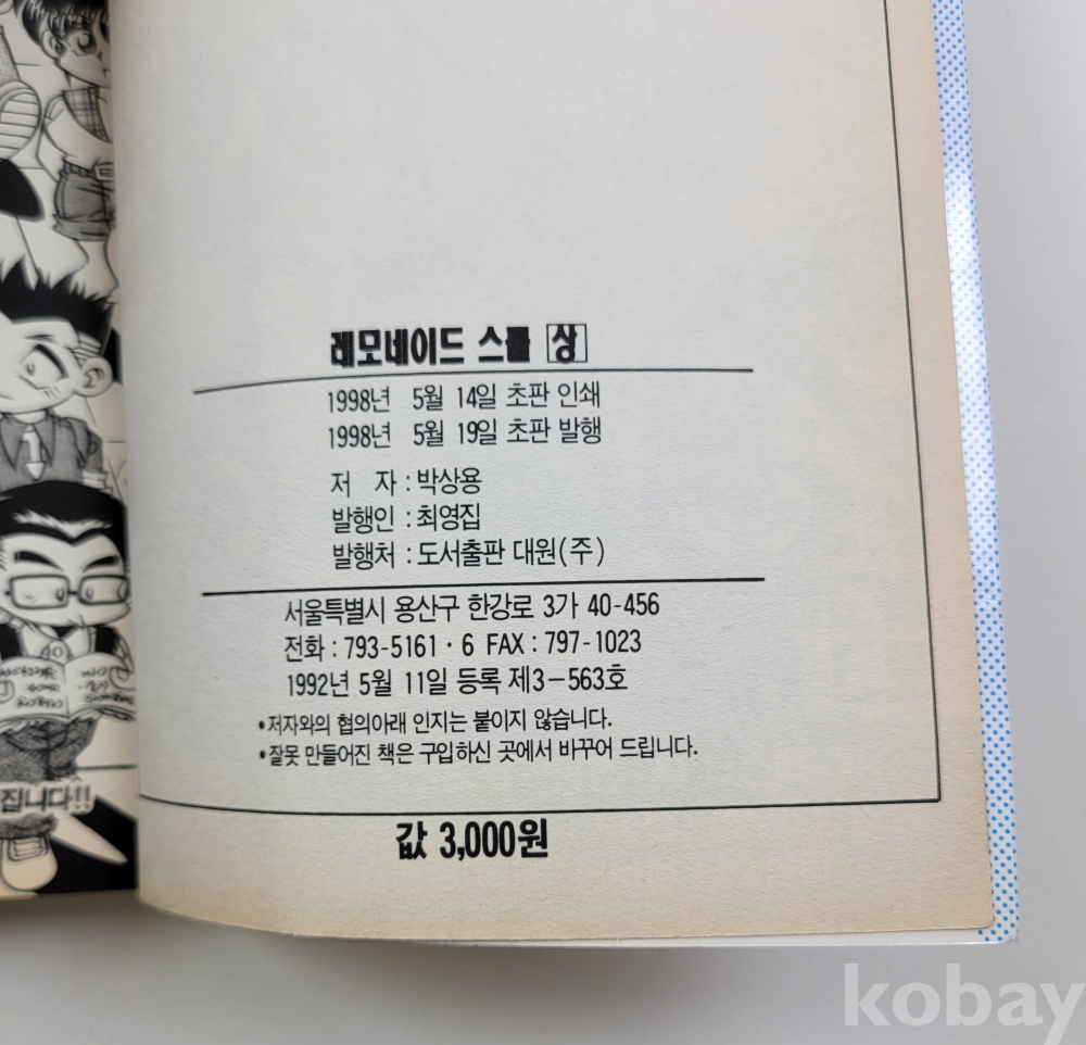 물 품 명 | [챔프코믹스] 박상용 / 레모네이드 스쿨 (상,하)완결 총2권 / 1998년 초판본 / 도서출판 대원 |