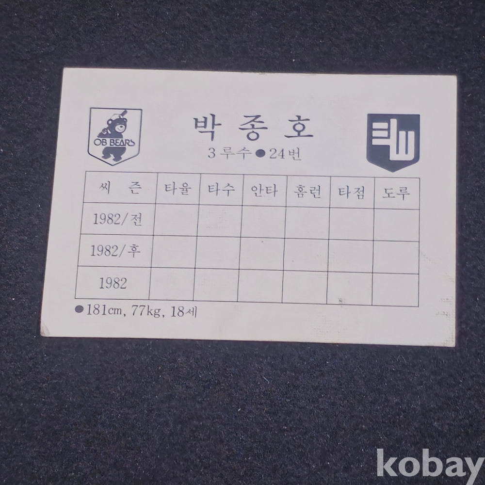 (((프로야구자료))) 프로야구 원년 1982년 오비베어스 3루수 박종호 스포츠 카드