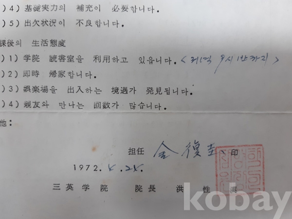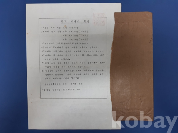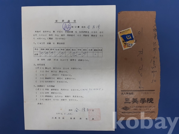 **** 1972년 삼영학원 가정통신, 실체봉투
