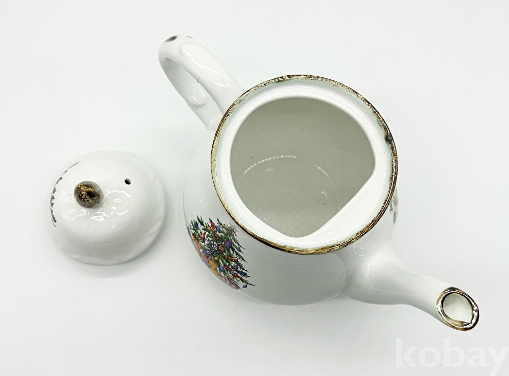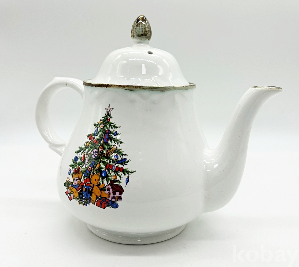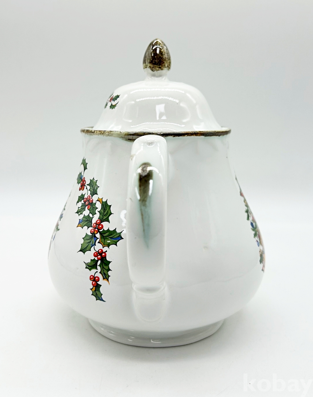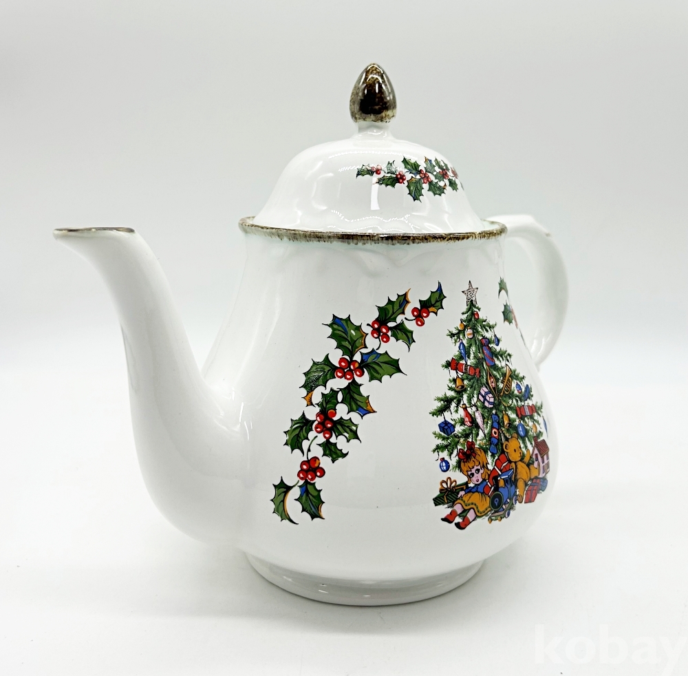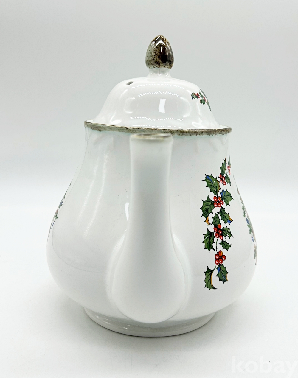 크리스마스 트리와 호랑가시나무 장식이 특징인 찻주전자이다. | ||