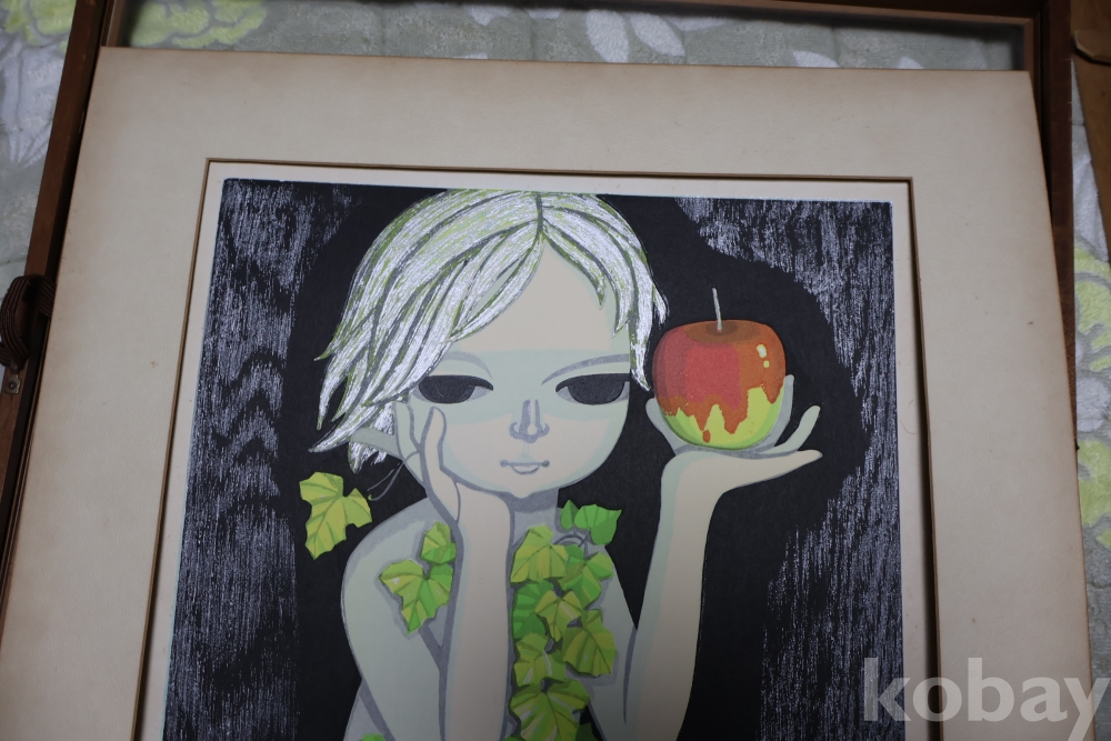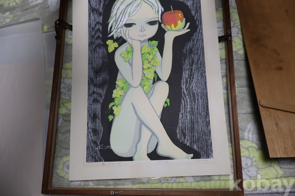 빨간 사과 목판화 원 본 임니다 일본 액자를 가진 대형 목판화 임니다 낙찰시 유리 없이 배송 힘니다 일본 현대 목판화의 대가 이며 네이버 참조 하세요