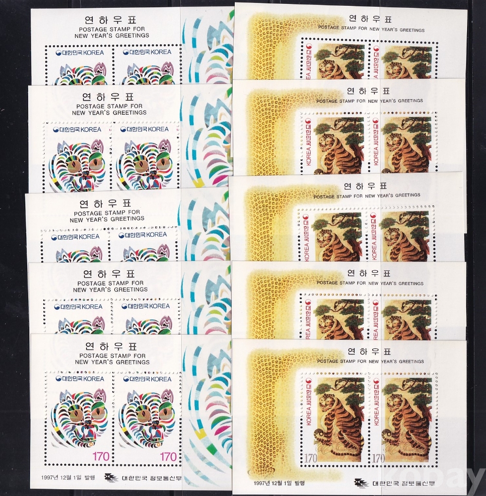 - 미사용 1998년용 연하우표 시트 2종 10장 모음 - 1997년 발행