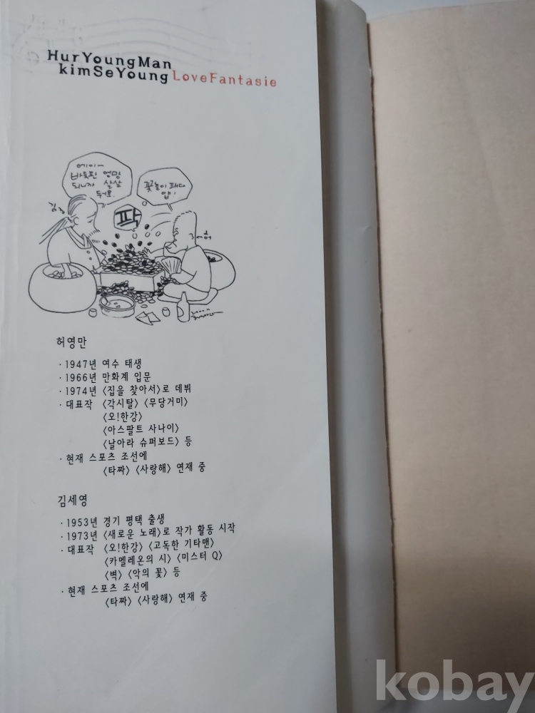 ★천원출발★ L-11.017 스포츠 조선 연재 만화 허영만,김세영 러브 판타지 사랑해요 1~5(묶음배송불가)