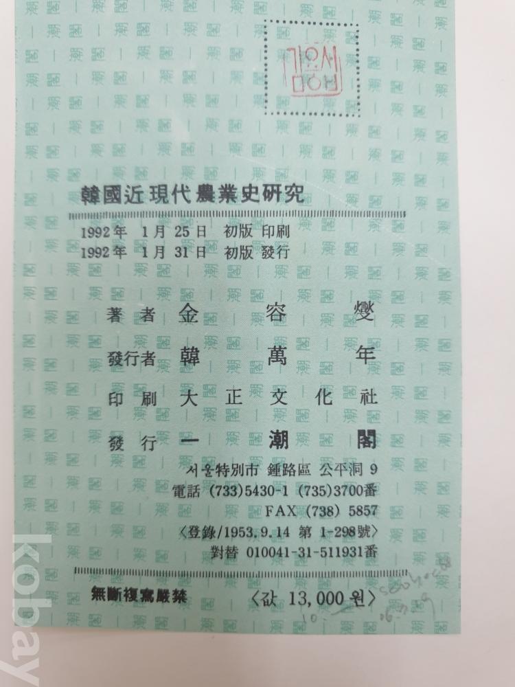 김용섭, 일조각, 1992년 초판