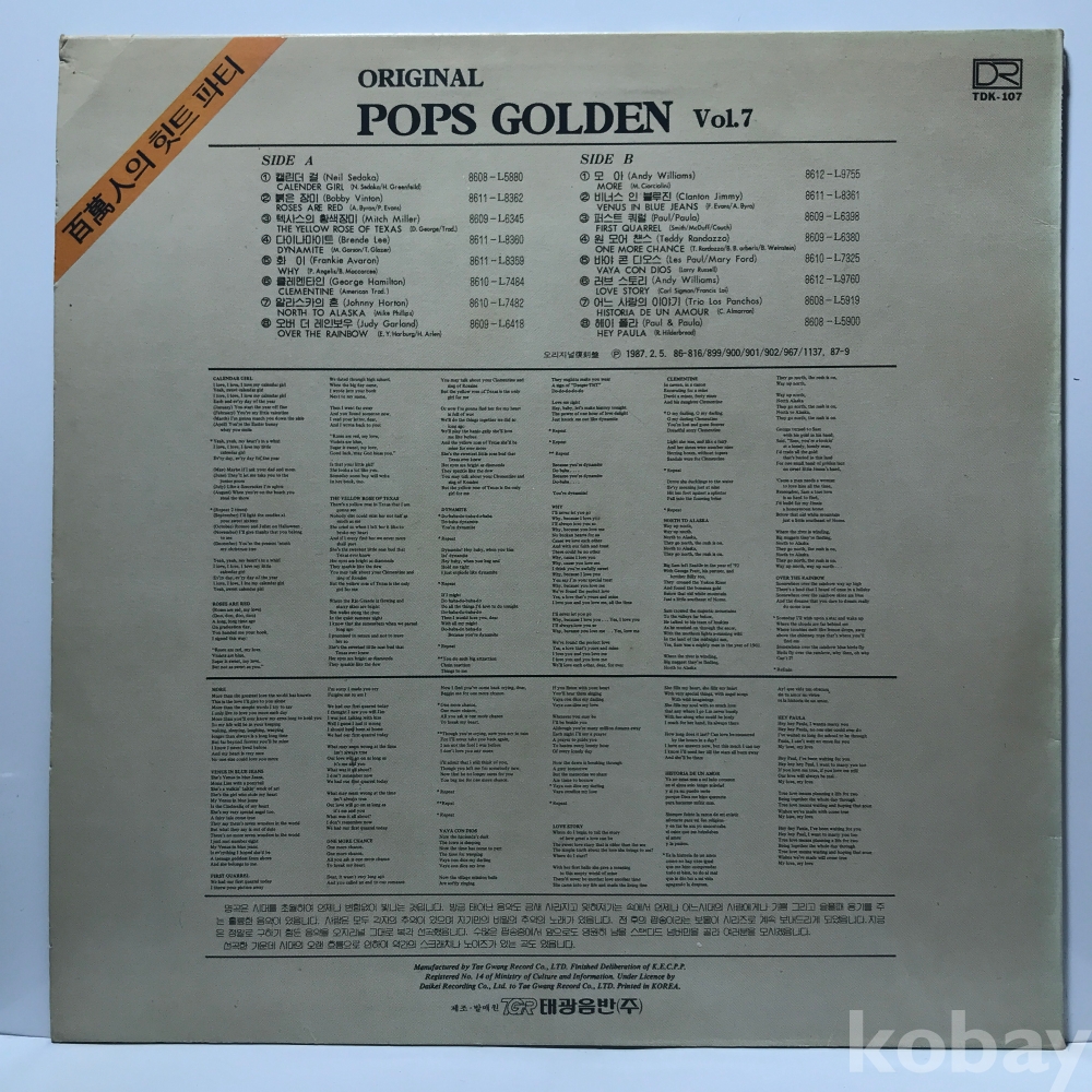 LP 36,750-14 ORIGINAL POPS GOLDEN Vol 7 . 87 태광 자켓 EX 알판 EX+