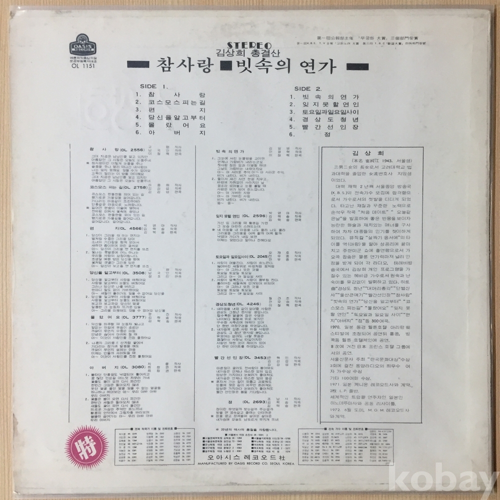 ⊙ 1972년 / 오아시스레코드 – OL 1151