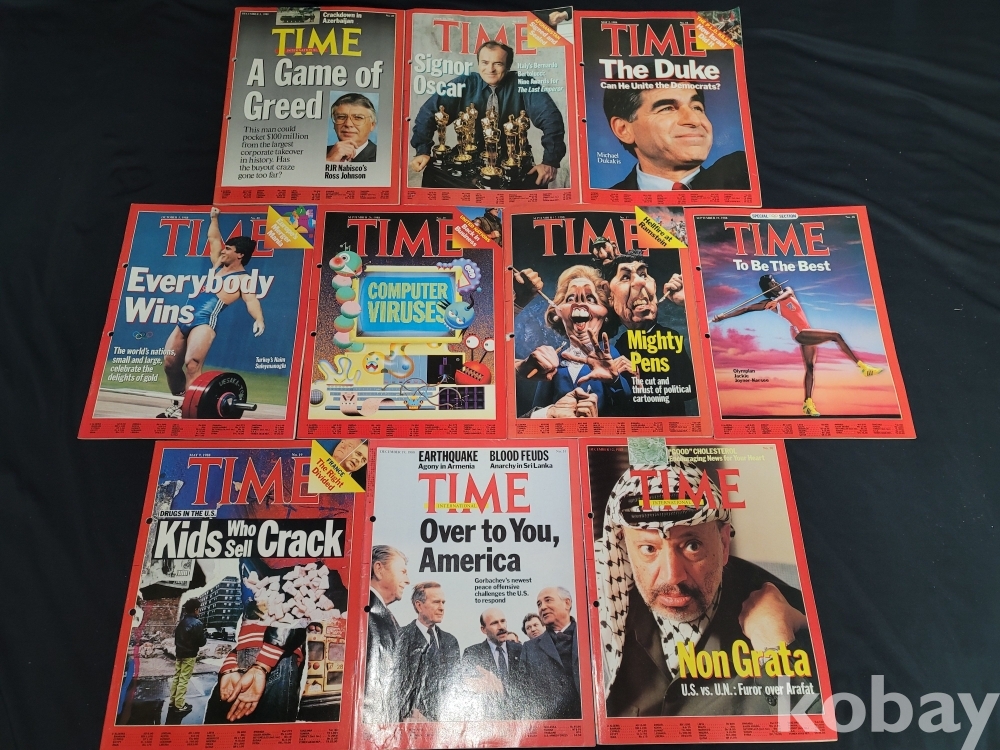 빈티지 세월 감이 느껴지는 1988년 발행된 미국 타임 잡지 Time Magazine 10권 일괄입니다.