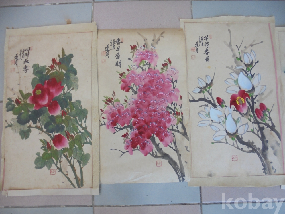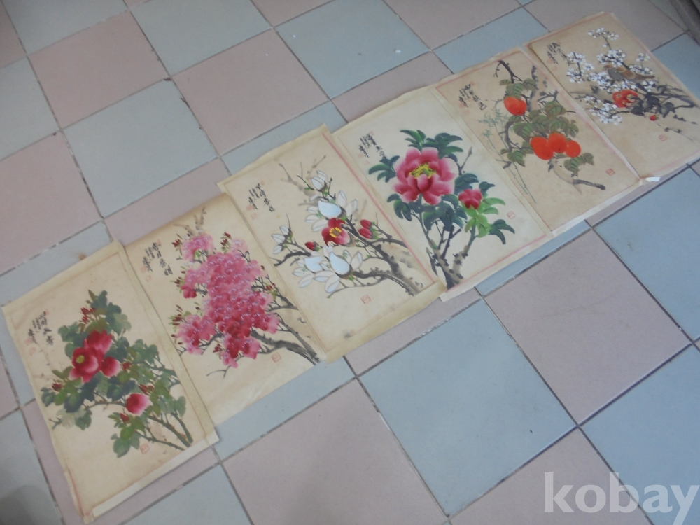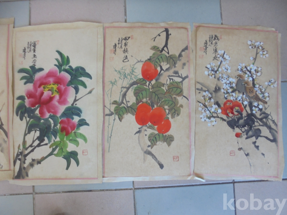 오래된 화려한 여러군자꽃과 홍시그림 상태좋은 병풍화 6폭 작품만의크기 가로세로 26 x 46 cm 외사진참조