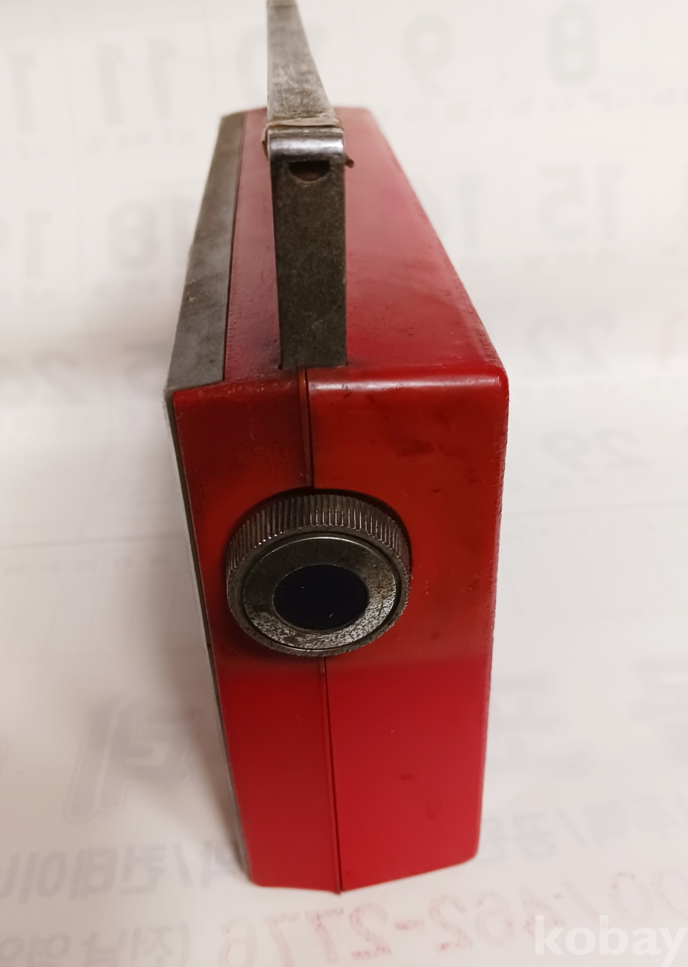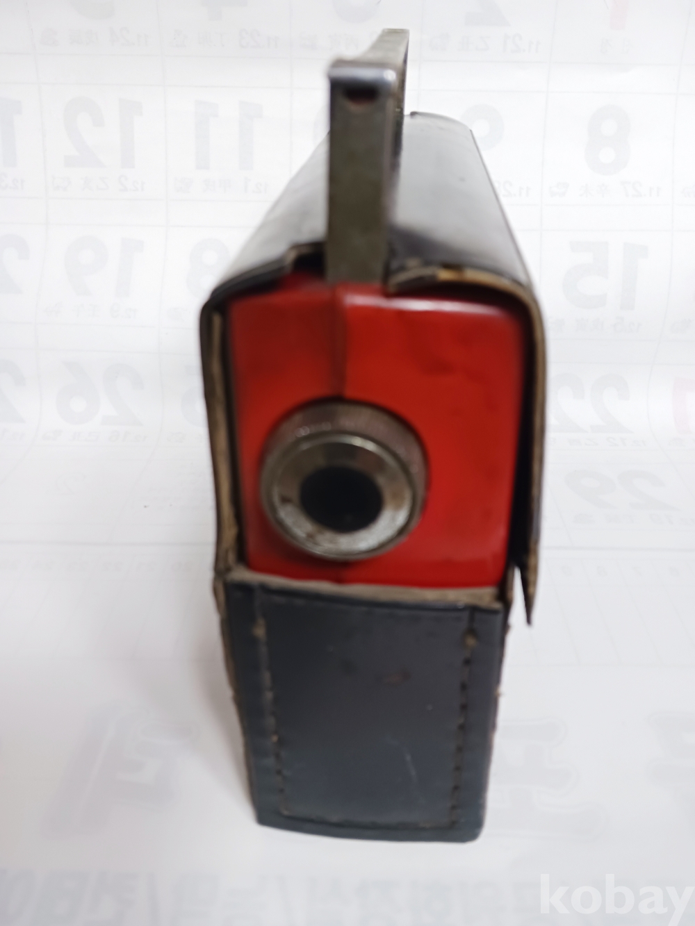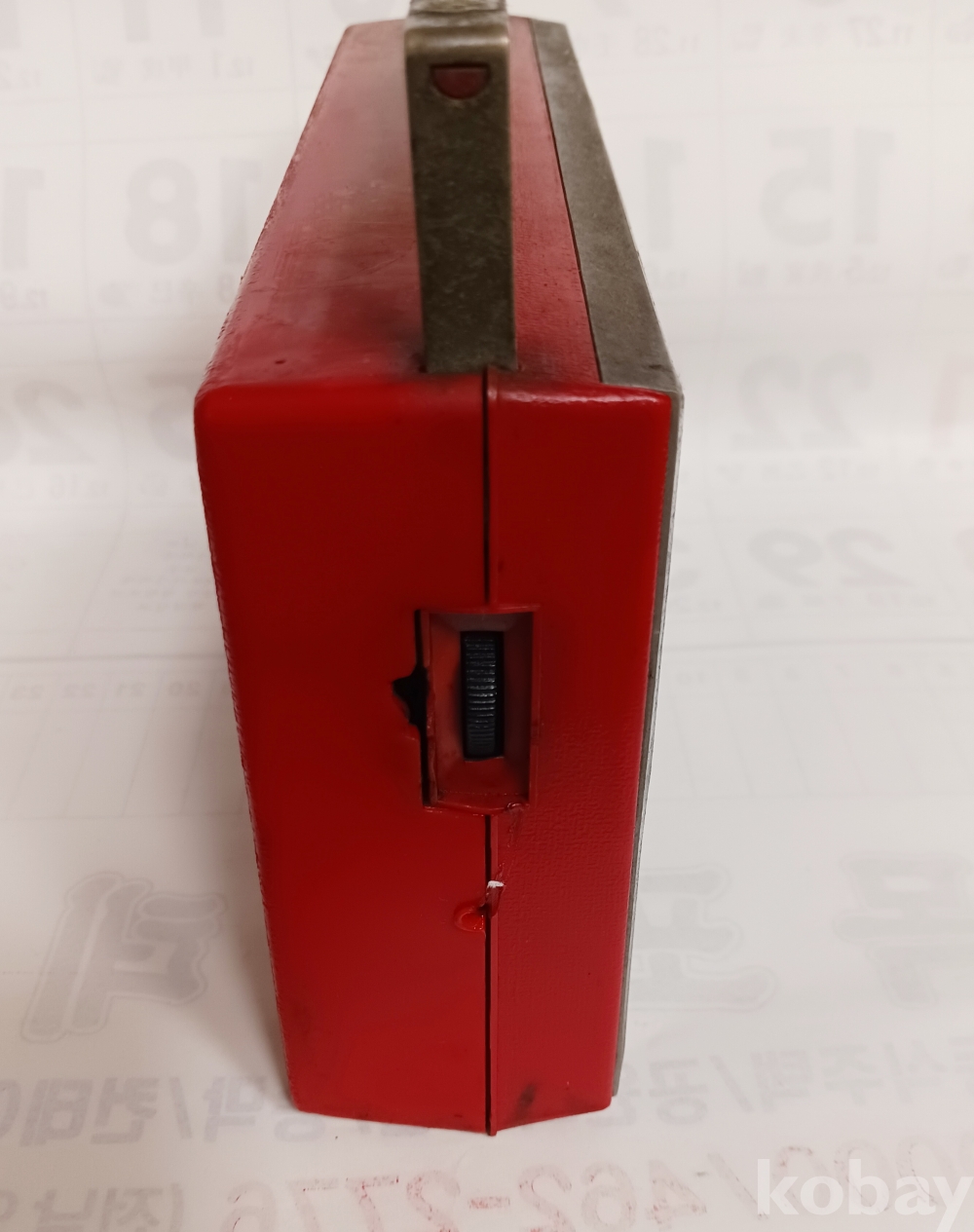 빨간색 몸체에 처음 생산때 비닐 덮개도 그대로 있고 후면 잠금 단추도 잘 됩니다