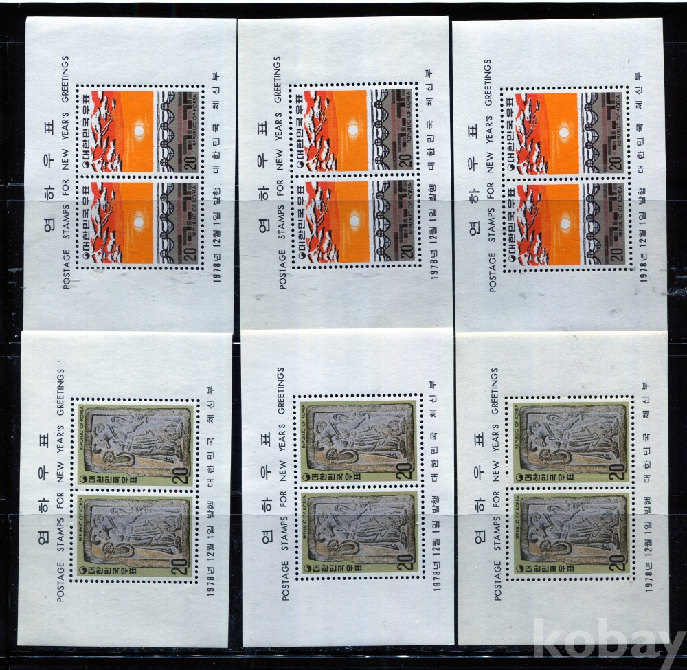 - [연하시트] 1978년 미사용 연하시트 3매 (All MNH : Mint Not Hinged) : 이미지 참조하세요