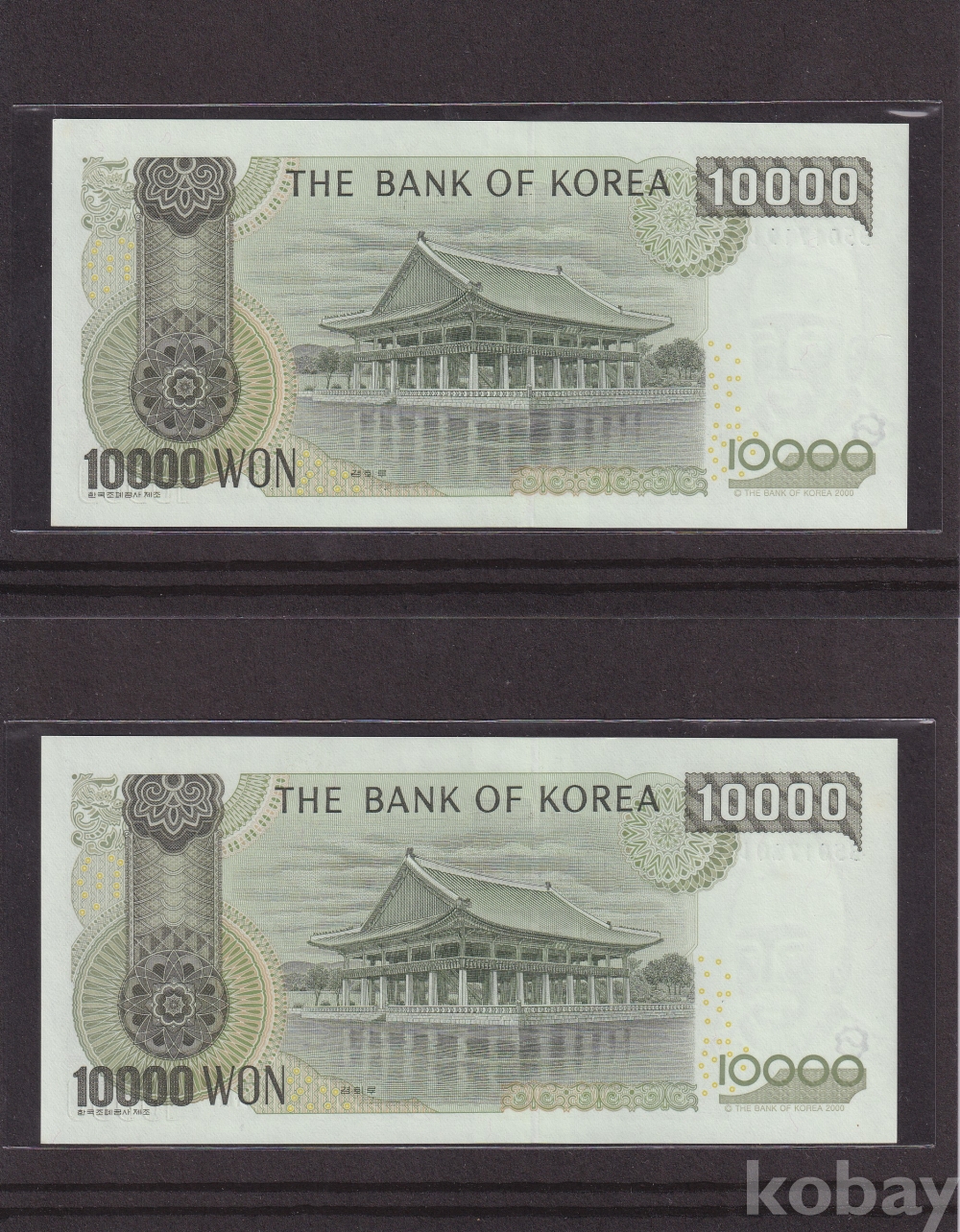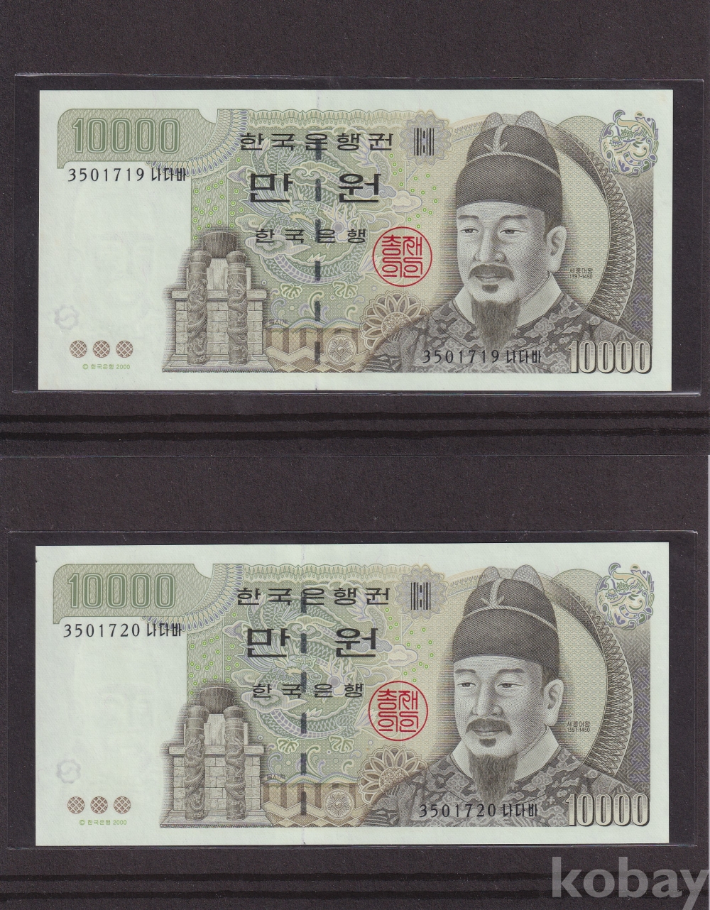 - 한국은행 2000년 5차 만원 미사용 2연번 지폐 - 2장 일괄