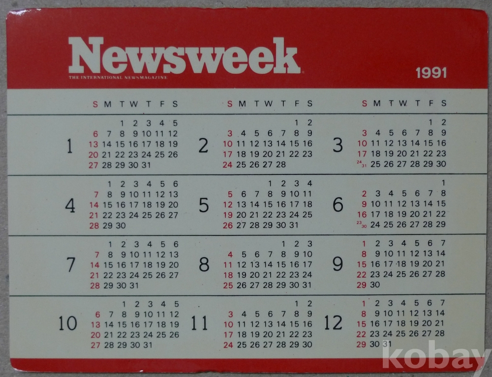1991년 주간 뉴스 위크 영어 잡지 광고 포켓 달력