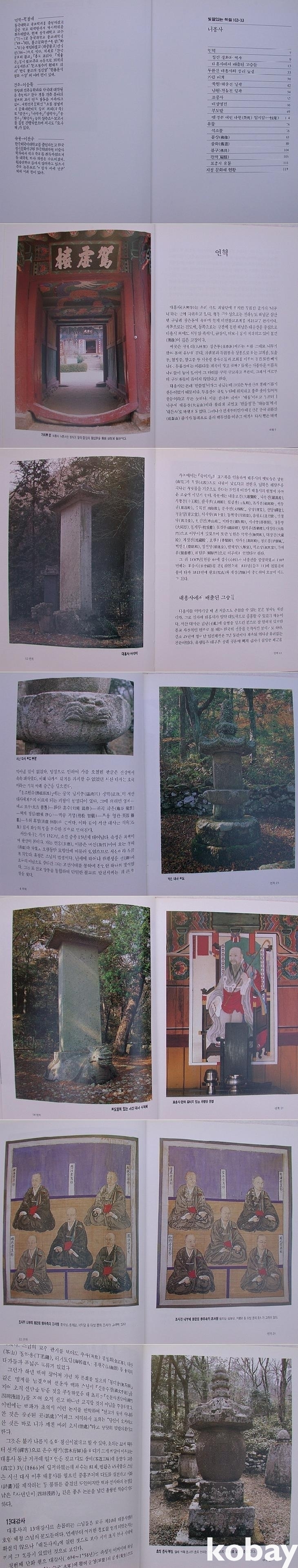 먼저 국토 남단 두륜산 줄기의 너무내에 자리한 대흥사의 <연혁>부터 설명하며 가람 배치와 유물 및 지정문화재를 도판사진들을 함께 수록하며 살폈다.