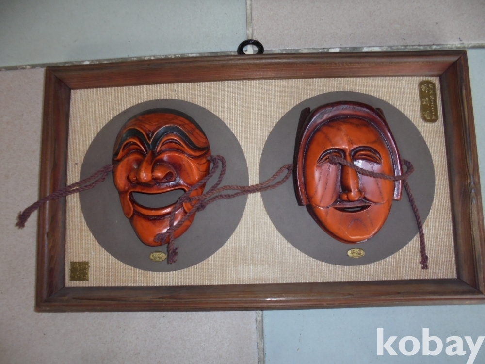 안동 하화탈 공방에서 주장되는 주요탈을 너무잘만들어 액자화한 액운물리치고 흥이나게하는 중요한인물 양반과 부네 국보제121호 하회탈 액자