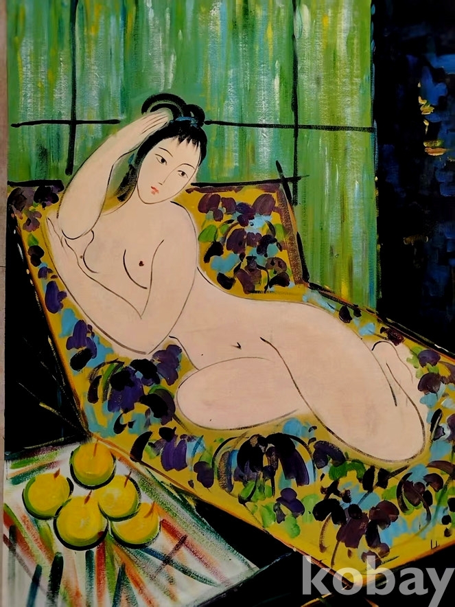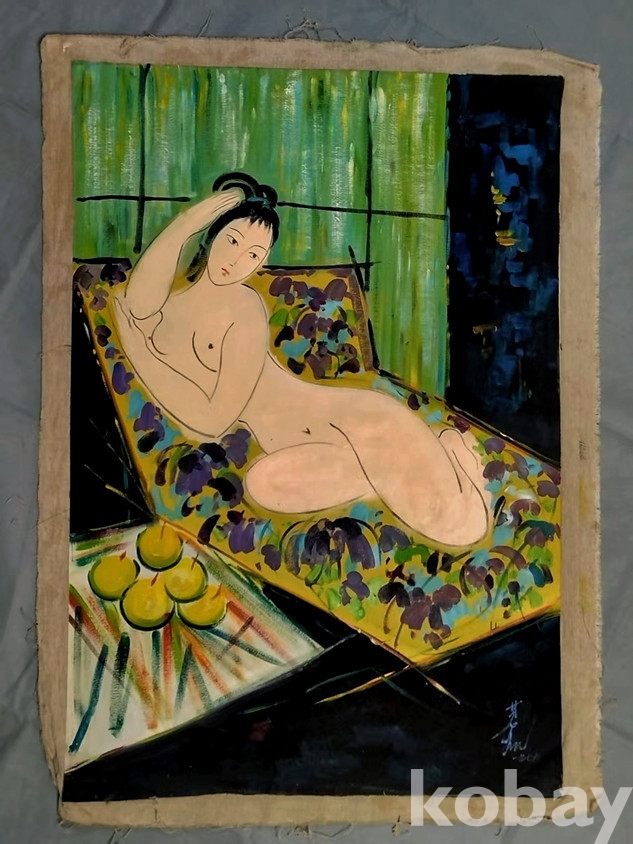 중국 근현대 서양화 정립자 임풍면(林風眠) 1979년 대폭 캔버스유화 미인도 누드