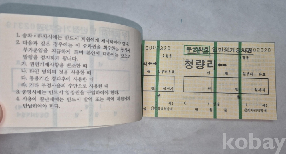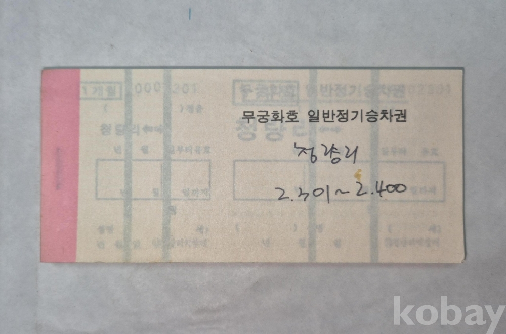 '무궁화호' 청량리 일반 정기승차권 미사용 100매 다발입니다.