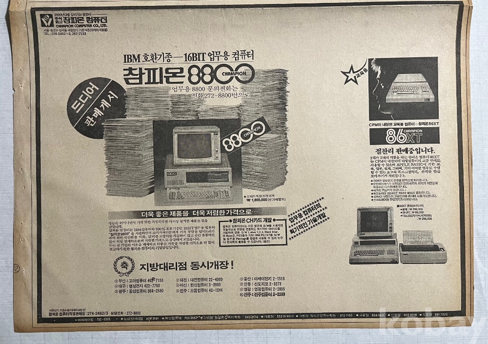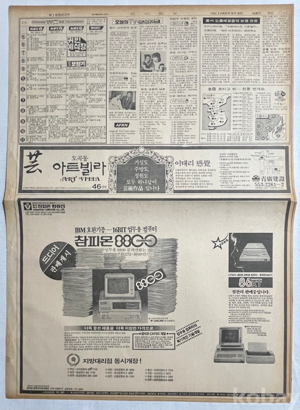 참피온 컴퓨터가 실린 1985년 조선일보 낱장입니다.
