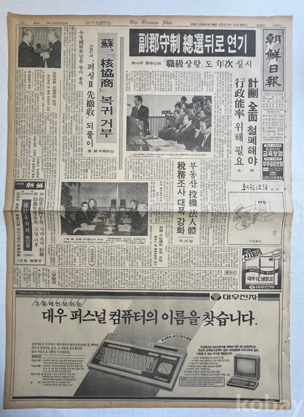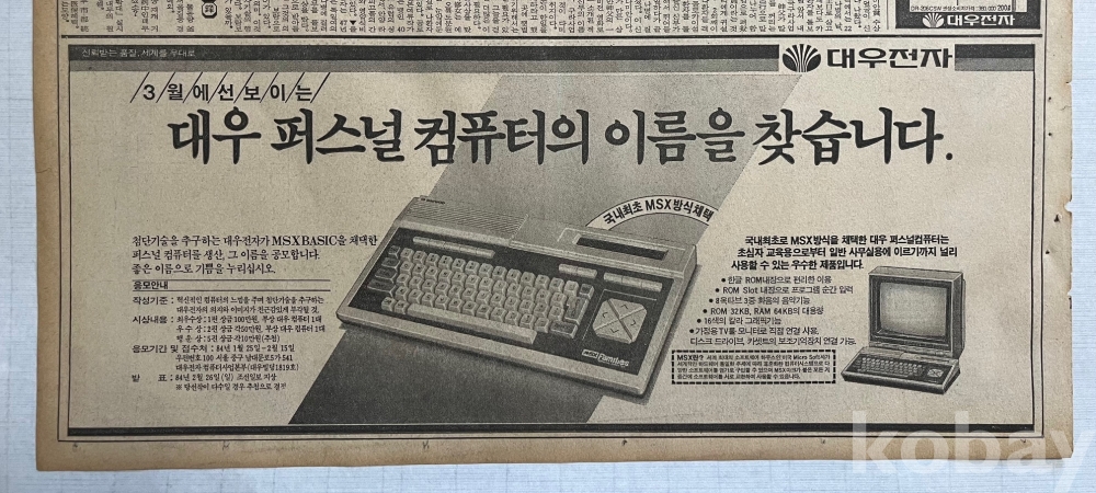 대우 컴퓨터 광고가 실린 조선일보 낱장입니다.