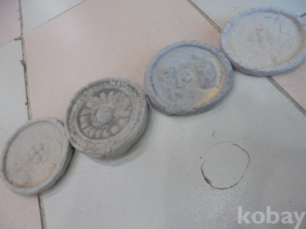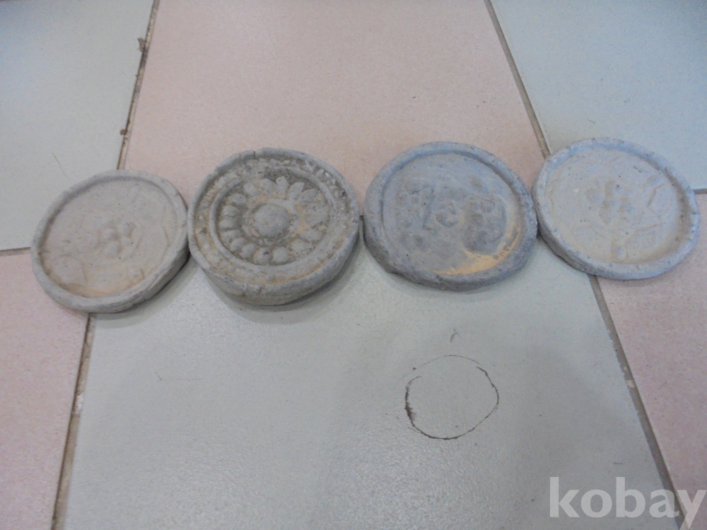 오래된 기와수막새로 오래되여 무늬가 선명하지못하나 귀한모양의무늬로 연구대상의 아주오래된 기와수막새 4점