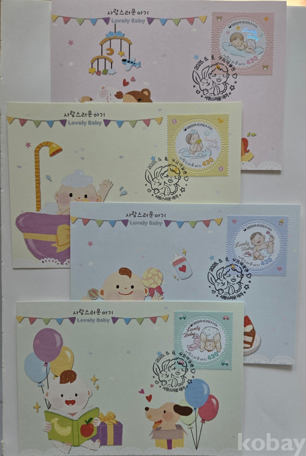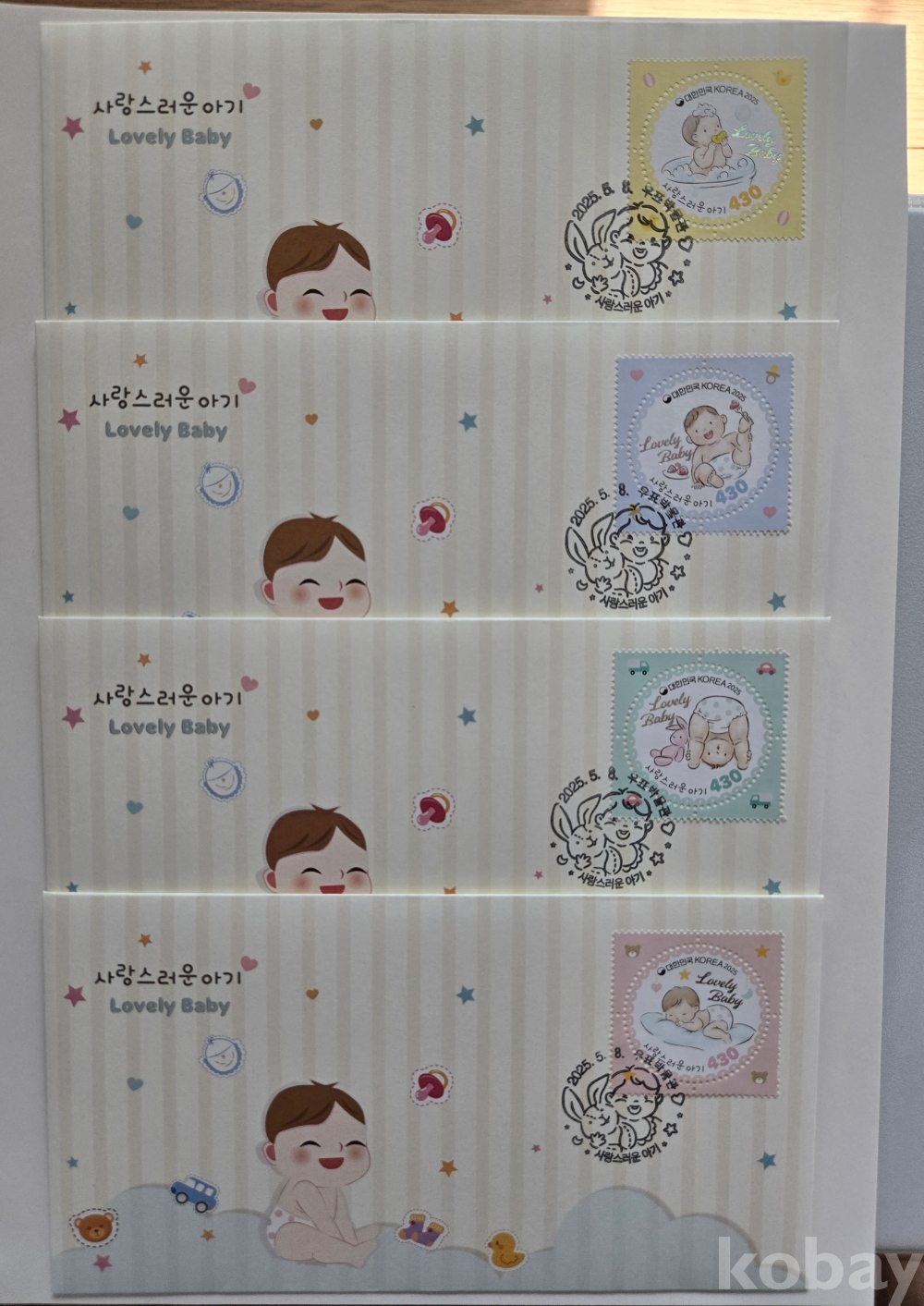 사랑스러운 아기 4종 박물관초일봉투입니다.