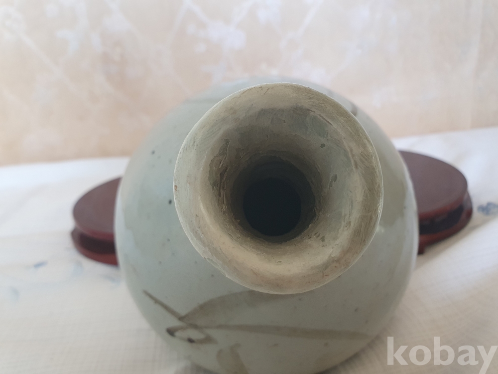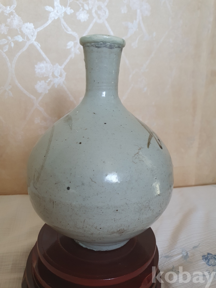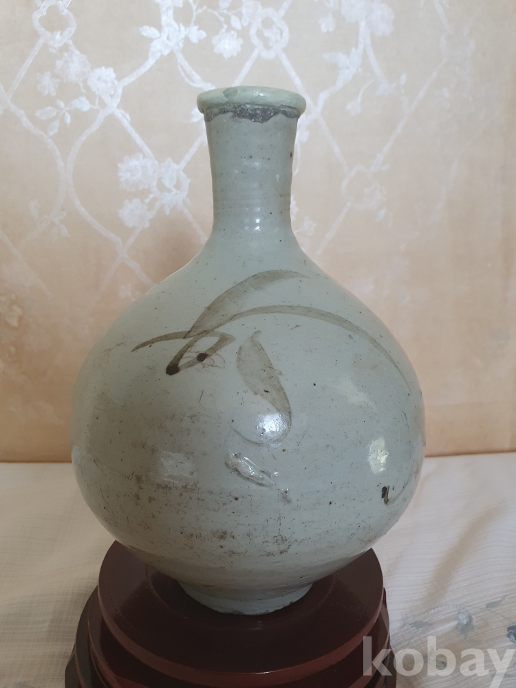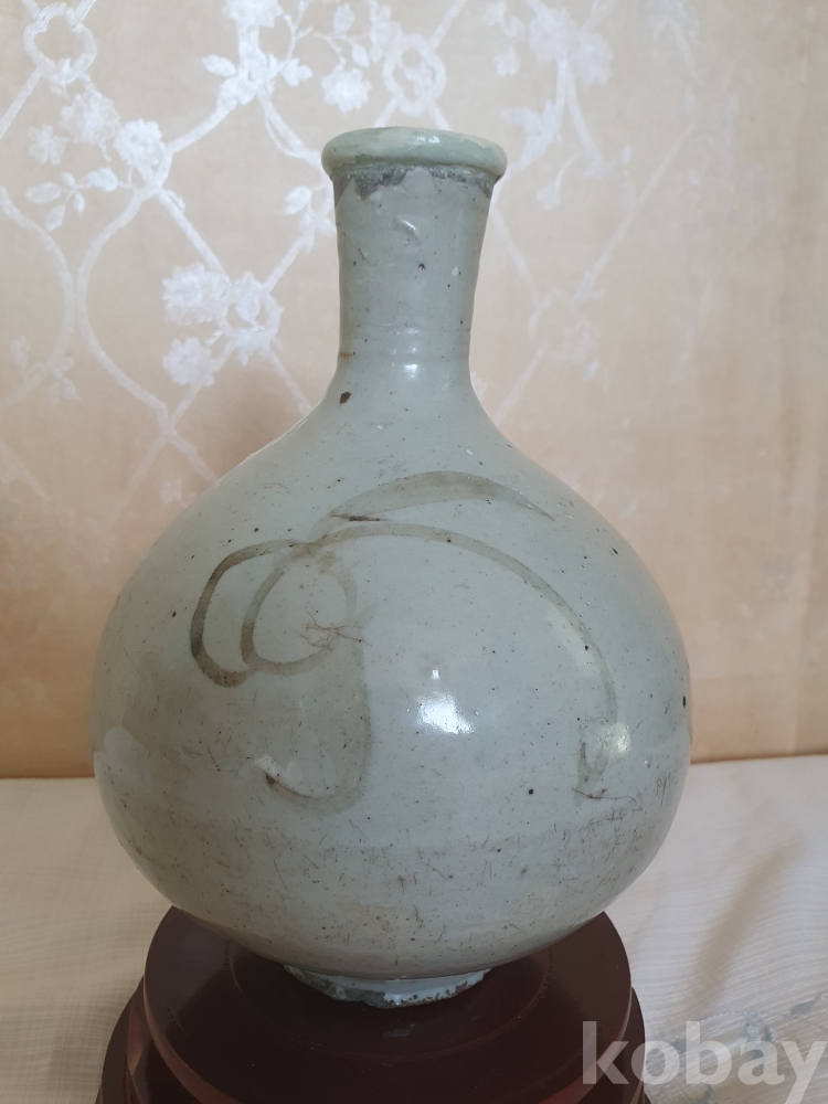 큼지막하고 귀한 철화추상초문이 있는 민요(지방요) 백자 주병 입니다.