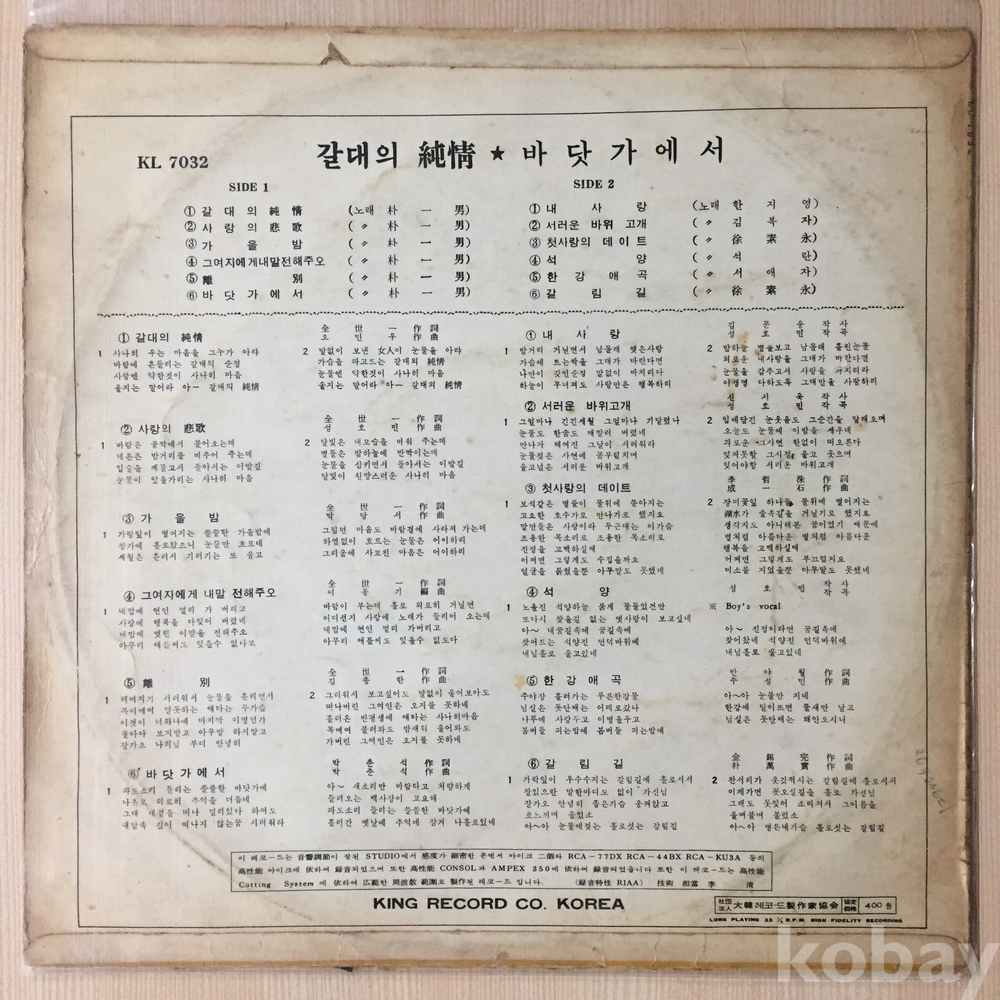 . 가요음반 대부분은 휘어짐이나 손상을 방지하기 위해 무지싱글자킷을 하나 더 사용하여 보관되었던 음반들입니다.