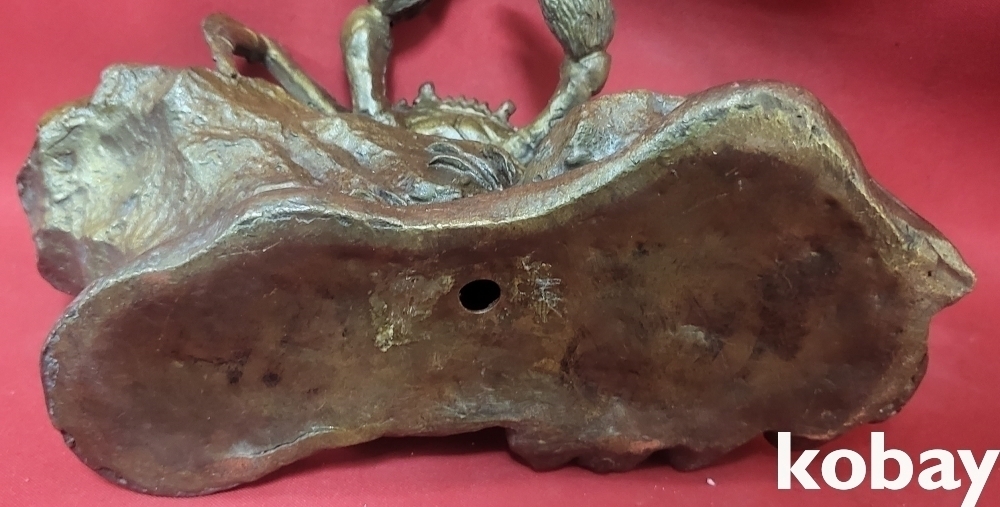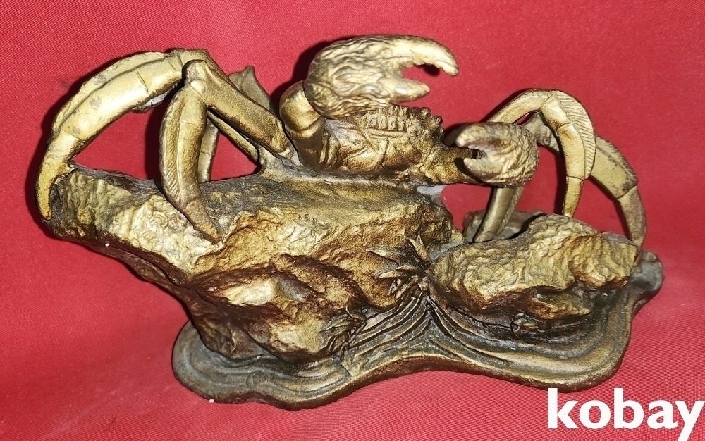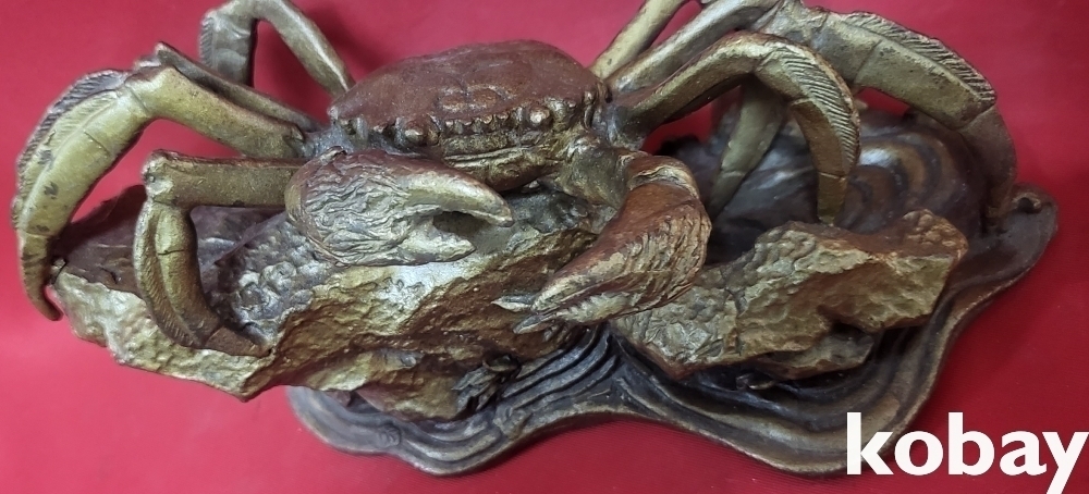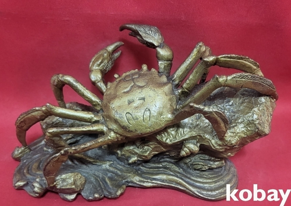 청동(靑銅) 바위에 오르고 있는 꽃게 형상 조각품입니다,