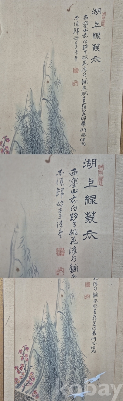 | 전남 장성 출신의 선전 작가이며 연진회(鍊眞會) 회원인 호당 신방우(浩堂 申方雨,1912~1973) 화백의 견바닥 [고사인물도(故事人物圖)] 부분적으로 얼룩이 약간 있으며 그외 상태 양호하다. 병품에있는 그림만띠어서보내 드립니다 (병풍은 낡아습니다 이점참고하세요) 작품크기넓이 30.8×112cm |