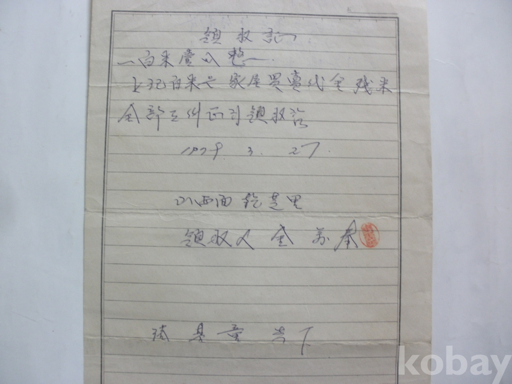 백미 (가옥매매대금 잔미금) 영수증 (1979년, 산서면)