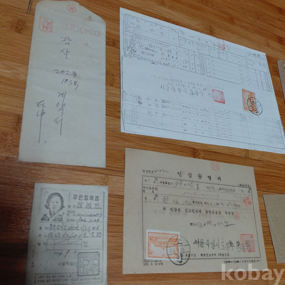 1975년 자료(등본ㆍ인감증명등 여섯점 일괄)올려드립니다