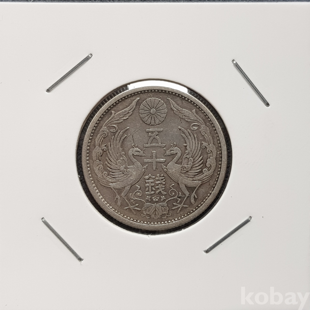 - 진품 일본 은화 - 대정(다이쇼) 14년(1925년) 오십전 욱일 은화