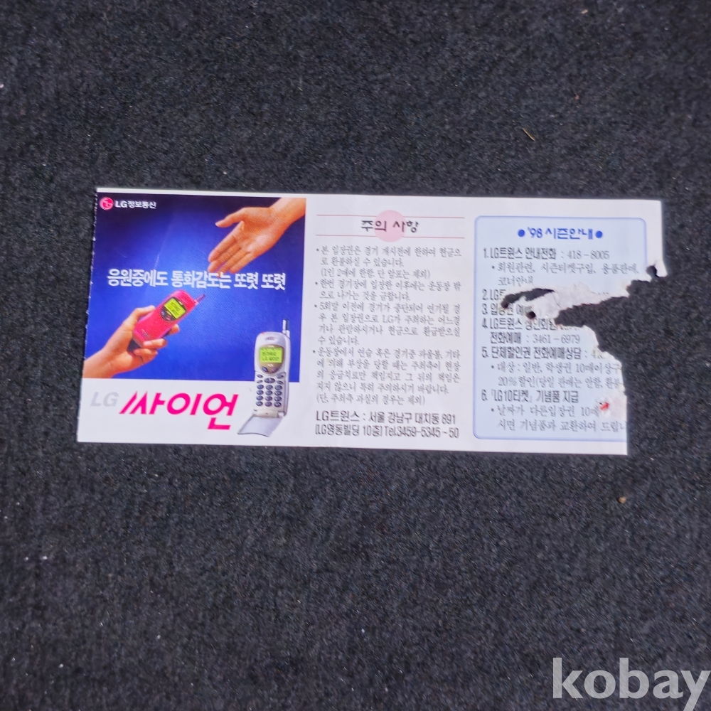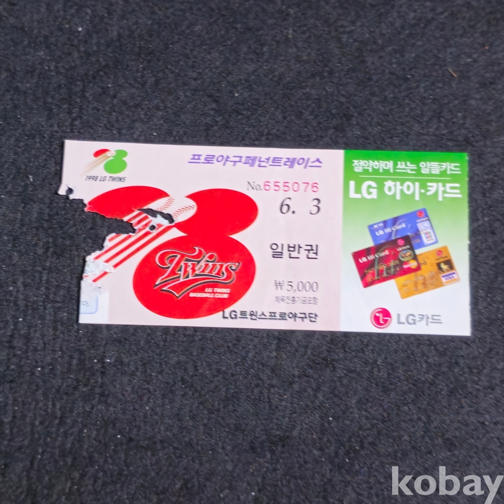 (((프로야구자료/입장권))) 1998년 LG 트윈스 프로야구 페넌트레이스 일반권 (6.3) 입장권
